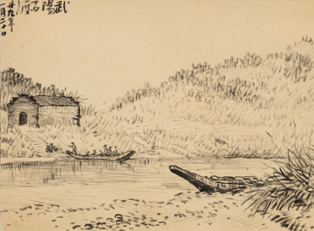 江西武陽古渡 胡根天 1940 年 20cm×28cm 紙本竹筆水墨