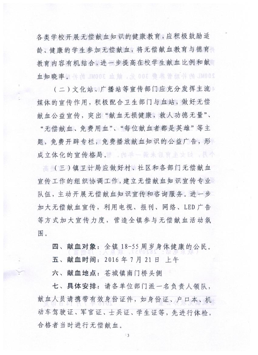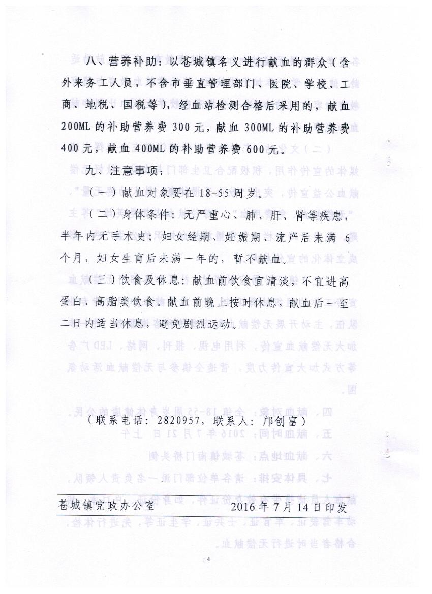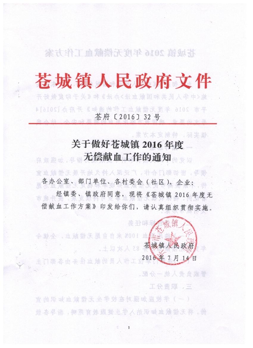關(guān)于做好蒼城鎮(zhèn)2016年度無(wú)償獻(xiàn)血工作的通知