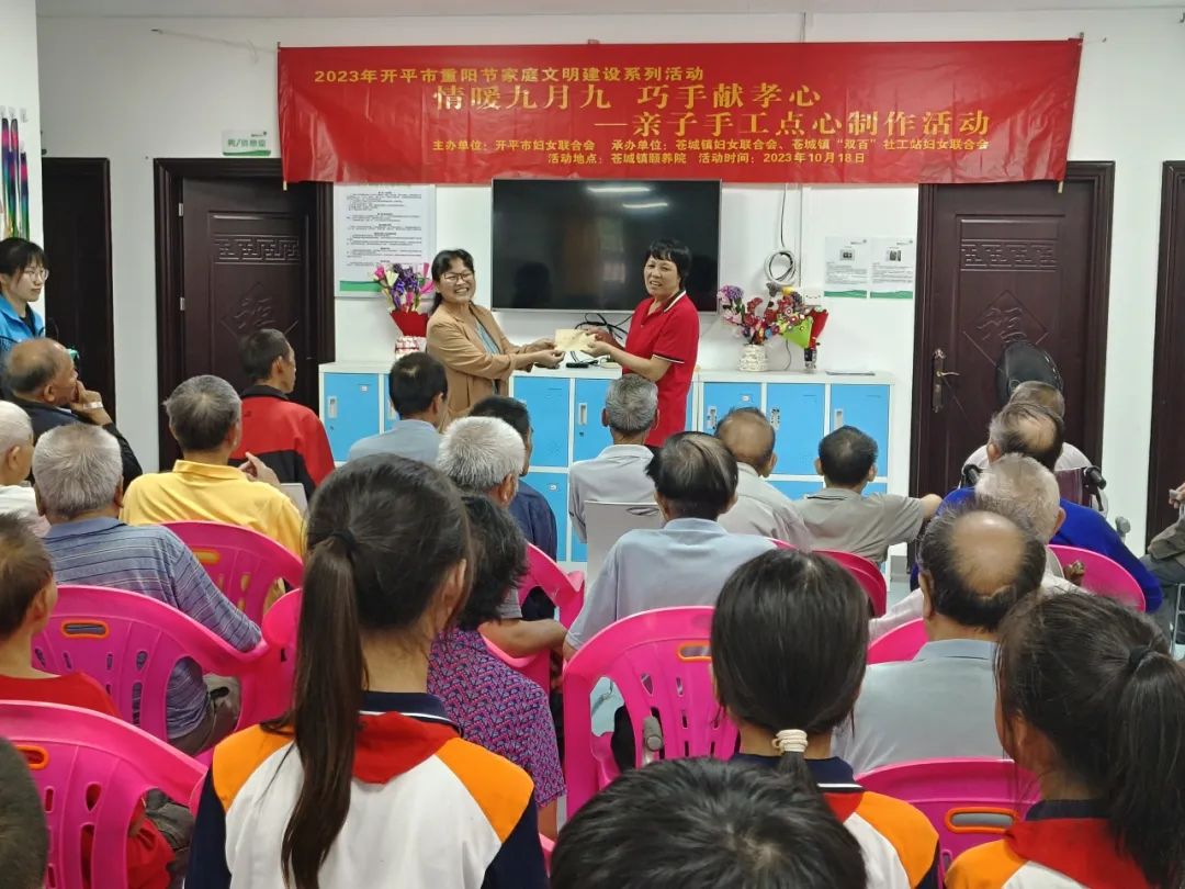 歲歲重陽(yáng),今又重陽(yáng)。為了弘揚(yáng)中華民族的傳統(tǒng)美德,重陽(yáng)節(jié)到來(lái)之際,蒼城鎮(zhèn)中心小學(xué)聯(lián)合蒼城鎮(zhèn)婦聯(lián)共同開(kāi)展了“情暖九月九 巧手獻(xiàn)孝心——親子手工點(diǎn)心制作活動(dòng)”。 10月18日下午3時(shí),蒼城鎮(zhèn)中心小學(xué)師生代表、家長(zhǎng)代表以及蒼城鎮(zhèn)婦聯(lián)工作人員一行人準(zhǔn)時(shí)到達(dá)蒼城鎮(zhèn)頤養(yǎng)院開(kāi)展活動(dòng)。 “雙百”社工站婦聯(lián)副主席張思敏同志主持開(kāi)場(chǎng) 蒼城鎮(zhèn)婦聯(lián)副主席、蒼城鎮(zhèn)中心小學(xué)常務(wù)副校長(zhǎng)袁映瓊同志致辭 蒼城鎮(zhèn)婦聯(lián)副主席、蒼城鎮(zhèn)中心小學(xué)常務(wù)副校長(zhǎng)袁映瓊同志代表學(xué)校向蒼城鎮(zhèn)頤養(yǎng)院送上慰問(wèn)金。 學(xué)生代表們給老人家們送上慰問(wèn)禮品。 蒼城鎮(zhèn)婦聯(lián)的工作人員針對(duì)重陽(yáng)節(jié)相關(guān)的傳統(tǒng)風(fēng)俗、歷史對(duì)學(xué)生進(jìn)行有獎(jiǎng)知識(shí)問(wèn)答,學(xué)生在輕松、歡樂(lè)的氣氛里學(xué)到了許多有關(guān)重陽(yáng)節(jié)的知識(shí)。 家長(zhǎng)和學(xué)生一起進(jìn)行親子手工制作開(kāi)平傳統(tǒng)點(diǎn)心——粘米角活動(dòng)?,F(xiàn)場(chǎng)氣氛既溫馨動(dòng)人又充滿歡樂(lè)。 學(xué)生代表為老人們送上美味點(diǎn)心。 該活動(dòng)不僅引導(dǎo)學(xué)生了解了傳統(tǒng)節(jié)日的來(lái)歷、意義、習(xí)俗,還營(yíng)造了尊老敬老的濃厚氛圍,激發(fā)了學(xué)生尊老愛(ài)老的情感,讓學(xué)生懂得感恩,學(xué)會(huì)感恩。 來(lái)源:開(kāi)平市蒼城鎮(zhèn)中心小學(xué)