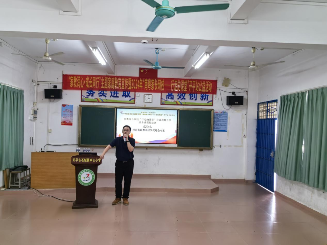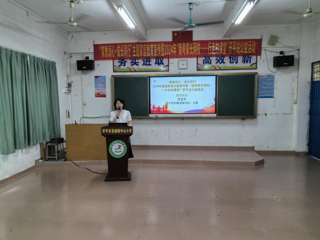 為深入貫徹落實習近平總書記關于注重家庭家教家風建設重要論述和黨的二十大關于加強家庭家教家風建設重要部署,大力弘揚優(yōu)良家風,宣傳普及科學家教,6月28日下午,“家教潤心·成長同行”2024年家庭教育主題宣傳暨“南粵家長網?!凶叩恼n堂”開平站公益活動在蒼城鎮(zhèn)中心小學主校區(qū)舉行。開平市婦聯(lián)黨組書記、主席勞念華,全國家庭教育專家、廣東省家庭教育研究會副會長張仲慶,開平市婦聯(lián)、市教育局和蒼城鎮(zhèn)相關領導,開平市、蒼城鎮(zhèn)家庭教育講師團成員,蒼城鎮(zhèn)中心小學、中心幼兒園和開平八中家長(父親)和教師代表等約140人參加了活動。 本次活動是開平市深化開展家風家教專題宣傳月活動的一項重要內容,為拓展宣傳對象和家庭教育成效,特意舉辦別開生面的父親專場,活動主題是“今天我們如何做父母”。活動開始,勞念華主席作動員講話,希望婦聯(lián)和教育等部門繼續(xù)合力推進家校社協(xié)同育人機制建設,并通過“行走的課堂”活動普及立德樹人家庭教育理念和知識,營造全社會重視支持家庭教育的濃厚氛圍。 為幫助家長樹立正確的家庭教育觀念,讓父母讀懂孩子的內心世界,引領父母做好情緒管理和心理建設,開平市家庭教育講師團成員楊明、袁映瓊老師分別進行授課,以“爸”氣歸來和用心溝通、用愛陪伴兩個課題開展家長課堂,讓家長充分認識到父親的重要性、如何回歸父親角色,指導家長建立和諧的家庭關系,樹立正確的教育觀念,關注孩子的心理健康,家校共育形成合力。 為進一步鏈接家庭、學校和社會機構的教育資源,提升家庭教育工作者的指導與育人能力,廣州市家庭教育研究促進會專家、廣州市家教家風志愿宣傳服務總隊活動部部長張曉東老師對南粵家長網校“行走的課堂”公益活動進行項目介紹,并為家庭教育講師團進行專業(yè)課程培訓,為今后工作實踐提供了專業(yè)指導。 活動最后,張仲慶教授為兩名講師團成員的課題授課進行點評指導并進行專題授課。張教授從父親在家庭教育中的角色、地位、父親的引領力以及新時期家庭教育應有的思考等角度進行分析,闡明父親在家教中對孩子成長的影響,授課內容新穎、幽默風趣,得到了大家的一致好評。 “行走的課堂”讓家庭教育“活”起來了。家庭教育是教育的開端,是孩子成長的重要起點和關鍵。接下來,蒼城鎮(zhèn)將繼續(xù)重視家庭教育,通過開展系列活動帶動更多家長承擔家庭教育主體責任,主動提升依法帶娃、科學育兒的能力,在全社會倡樹新時代家庭觀,營造注重家庭家教家風的濃厚氛圍。