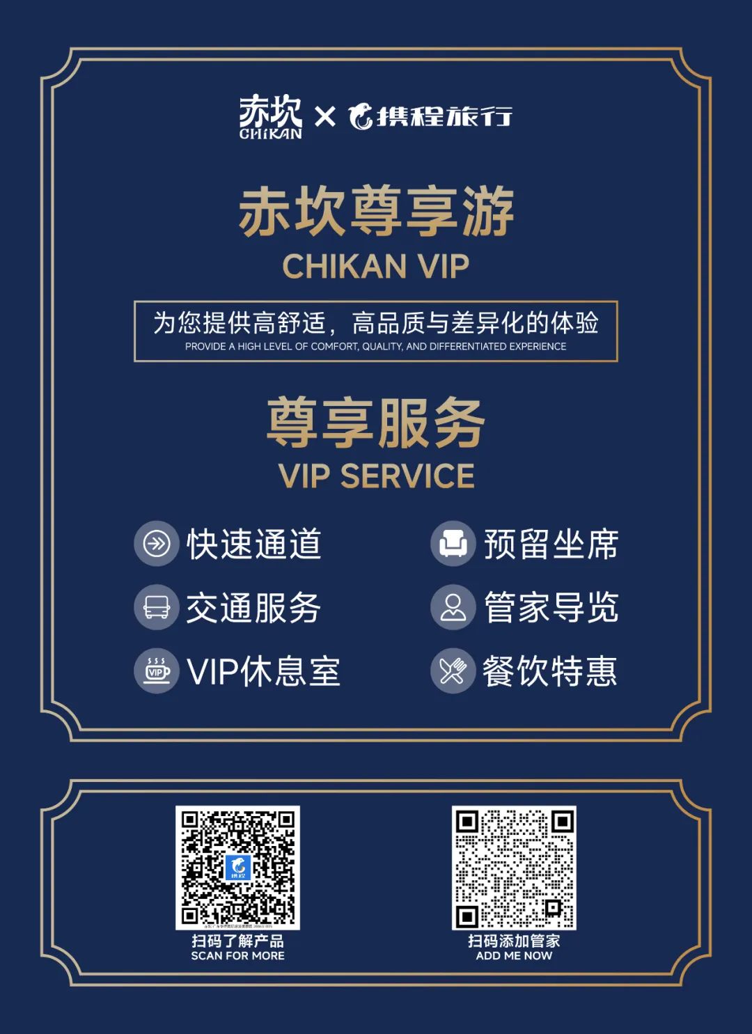 ( 點擊海報立即購票??) 第二件事:對于經(jīng)濟(jì)相對寬裕,愿意充值提升體驗的游客,赤坎華僑古鎮(zhèn)開通VIP游園服務(wù)。倍速縮減不必要的排隊等待,把時間還給看劇、體驗、休息、享受等正經(jīng)事上。 ·尊享N項服務(wù)· 大劇免排隊、超絕觀劇座席、專享休息室 前排舒適的鐺鐺車搖櫓船、不廢腿代步逛園子 隨問隨答的導(dǎo)覽講解、體驗廣式下午茶 登頂榮安樓俯瞰赤坎、定制尊享伴手禮 ( 掃碼咨詢了解服務(wù)??) 大劇免排隊、小劇輕松看。 購買VIP/SVIP尊享服務(wù)可享受 觀劇免排隊+C位座席的超絕體驗 《火秀》特設(shè)二樓VIP觀演區(qū) 180°從左往右全景無遮擋看劇 是時候換個角度看獨屬于你的 夏夜璀璨的煙花和打鐵花 《歸途》《南樓!南樓!》前排落座更入戲 看得見的水幕光影、看得清的人物神態(tài) 在潭江泮將僑鄉(xiāng)的百年故事向您娓娓道來 免排隊,一早一晚感受非凡的視聽體驗 《紅色婚禮》《摩登時代》 同樣設(shè)置了VIP快速通道和觀演座席 在《摩登時代》乘上開往赤坎的渡海郵輪 感受一場熱情火辣的海上百老匯。 在《紅色婚禮》的木棉花樹下 成為這場革命婚禮的見證人。 來到赤坎,必須安排的 鐺鐺車+搖櫓船的游園體驗 不用排長隊、避免人擠人 前排拿捏,風(fēng)景隨手拍都出片。 坐上二層鐺鐺車環(huán)游古鎮(zhèn) 近看騎樓畫棟、遠(yuǎn)眺僑鄉(xiāng)風(fēng)光 叮叮叮~跟隨著鐺鐺車軌道往前走 建筑人文、歷史情懷都在向你訴說著赤坎 搖啊搖,搖到清波驚游魚、碧波蕩漾 沿著彎彎曲曲的河道,兩岸風(fēng)光次第展開 登船搖櫓,在嶺南水鄉(xiāng)入畫遨游 在霧森仙境邂逅一場古鎮(zhèn)奇遇 各位VIP/SVIP的大大們 N多尊享服務(wù)將助力您游赤坎 靜謐舒適的VIP室內(nèi)休息室 吹吹空調(diào)、喝喝茶水,小歇再出發(fā) 資深專業(yè)的導(dǎo)覽講解帶您邊游邊講 將赤坎百年歷史向你一一介紹 隨時出發(fā)的不廢腿代步自駕游 100步游遍赤坎45萬㎡不再是夢 精致美味的廣式下午茶 體驗地道特色的三點三文化 登上赤坎最高點俯瞰全景 在榮安樓樓頂看金墟夜色 還是氪金的VIP, 豐儉由人,各取所需。 適合自己的,才是最好的。