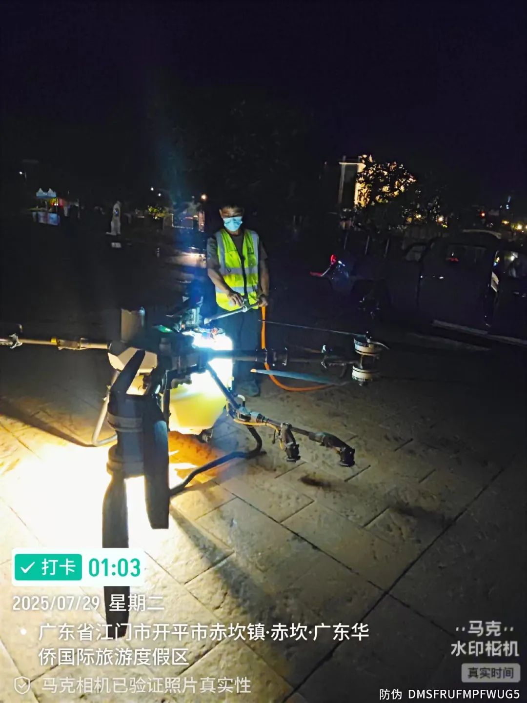 專業(yè)消殺,精準除害 每日對景區(qū)重點區(qū)域進行消殺,包括各酒店民宿入住大堂以及房間、鐺鐺車、搖櫓船、演藝場地、員工宿舍等,對全景區(qū)下水道藥物投放滅蚊蟲卵消殺,每日清掃噴殺積水,死水區(qū)域,不間斷檢查消殺垃圾房、商鋪與辦公室、未開放區(qū)域等,目前全覆蓋消殺9次,對衛(wèi)生死角,空置建筑物消殺50次,覆蓋消殺面積約40萬平方米,出動消殺人員12人次,每天安排保潔員60多人同步進行下水管道投藥,翻盆倒罐檢查,共噴灑藥物水劑1噸。景區(qū)內1270間客房全部完成消殺并放置滅蚊裝置。 環(huán)境整治,衛(wèi)生升級 在日常保潔的基礎上,加大環(huán)境整治力度。及時清掃垃圾、雜草及衛(wèi)生死角,增加垃圾清運頻次,保持環(huán)境整潔。 古鎮(zhèn)全域,噴殺蚊蟲 根據市統(tǒng)一部署,赤坎鎮(zhèn)聘請了專業(yè)團隊,于7月28日夜間至29日凌晨對赤坎華僑古鎮(zhèn)、開平不夜城(夢回開平-僑海華韻)景區(qū)及周邊村居采取點燃蚊香、無人機噴灑滅蚊藥物等措施進行滅蚊消殺。7月28日,向古鎮(zhèn)周邊4個村委會65條自然村發(fā)放200盒蚊香,給村民一起點燃蚊香助力滅蚊防疫工作。每一個可能藏有蚊蟲的角落都不放過,有效清除成蚊和幼蟲隱患,降低蚊蟲密度,從源頭上減少蚊媒傳染病的傳播風險。 清理積水,阻斷孳生 加強對古鎮(zhèn)周邊建筑工地的管理,要求施工方及時清理工地內的積水,妥善存放建筑材料,避免形成積水洼,為蚊蟲滋生創(chuàng)造條件。 赤坎華僑古鎮(zhèn)作為歷史文化的瑰寶,赤坎鎮(zhèn)不僅注重對古建筑的保護與文化傳承,更將游客與居民的健康安全放在首位。在這個蚊蟲活躍的季節(jié),我鎮(zhèn)將積極開展滅蚊防疫行動,全力為大家打造一個安全、舒適的游覽與居住環(huán)境。