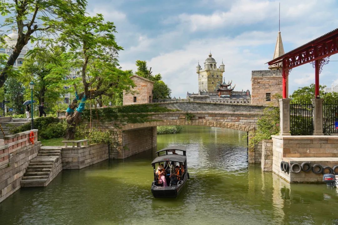 赤坎靜臥在潭江之畔,江水宛如碧鏡,清澈而寧?kù)o,為影視提供了豐富的水景取景機(jī)會(huì)。搖櫓船輕輕搖曳,順著環(huán)繞古鎮(zhèn)的潭江“爭(zhēng)渡、爭(zhēng)渡”。雖未能驚起一灘鷗鷺,卻也能看到“幾處早鶯爭(zhēng)暖樹”。再加上岸邊的騎樓翩然躍現(xiàn),江邊碼頭船兒羅列,宛若畫中仙境。