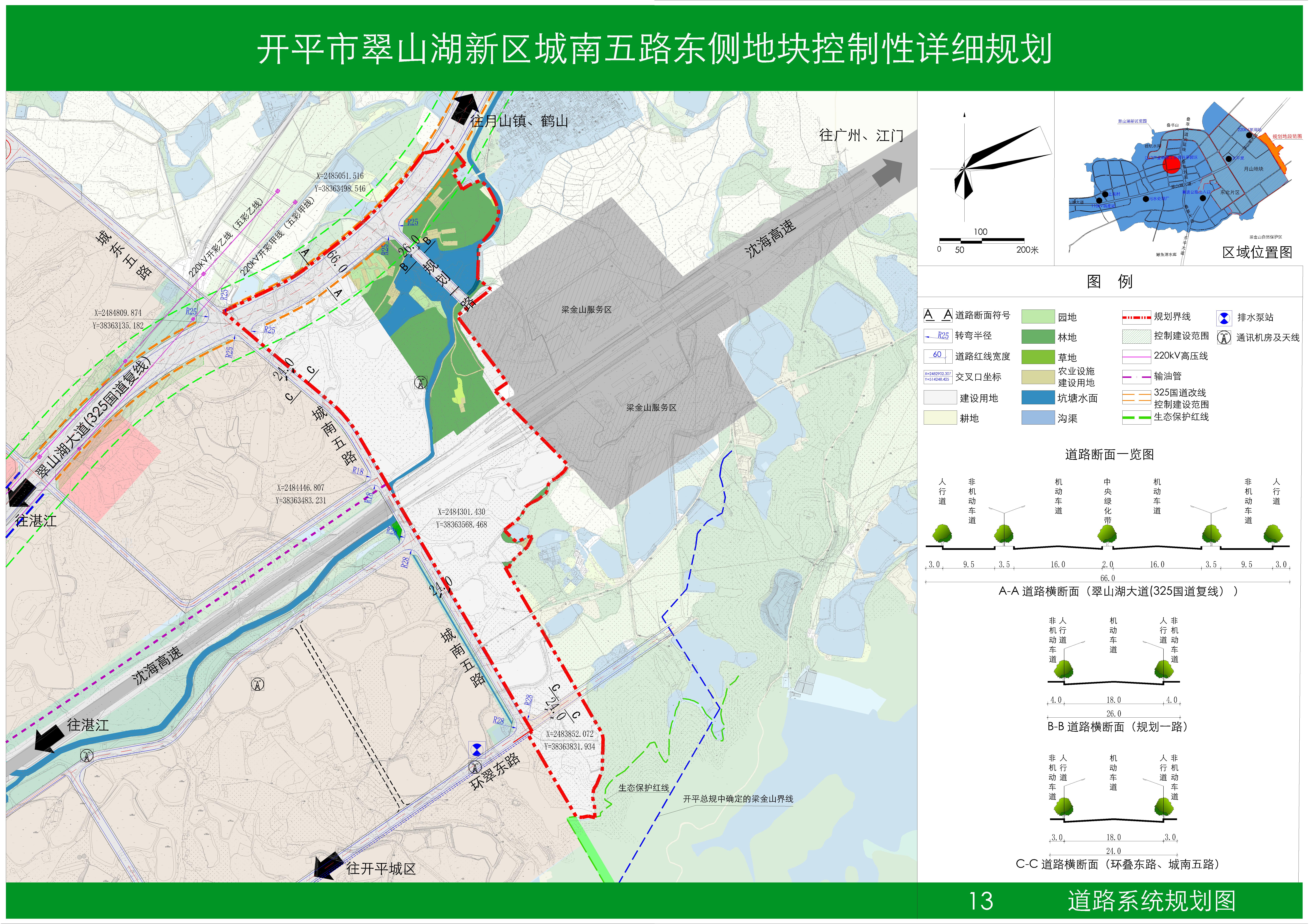 規(guī)劃方案位置與范圍:規(guī)劃總用地面積為44.62公頃,位于翠山湖新區(qū)城南五路東側,北至翠山湖大道,西臨城南五路,南接環(huán)翠東路,沈海高速在地塊中部經(jīng)過。