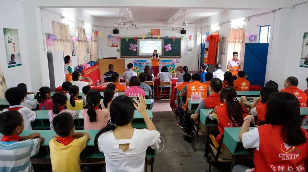 5月29日下午,開平市“向日葵守護(hù)行動(dòng)”服務(wù)站成立儀式暨“六一”慰問活動(dòng)在育英小學(xué)舉行,關(guān)愛留守兒童,關(guān)注未成年人身心健康成長。 “向日葵守護(hù)行動(dòng)”服務(wù)站由開平市民政局、市教育局、市氣象局、長沙街道、長沙街道樓崗墟居委會(huì)、市社工協(xié)會(huì)、市惠群社工中心共同成立,將不定期為留守兒童提供安全教育、心理輔導(dǎo)、個(gè)案幫扶以及專題講座等形式多樣的關(guān)愛活動(dòng)。 留守兒童是全社會(huì)關(guān)注的特殊兒童群體之一,主辦單位聘任6名來自社會(huì)各界的義工為“向日葵守護(hù)行動(dòng)”護(hù)衛(wèi)義工,并發(fā)動(dòng)黨員義工組成“友伴童行”義工服務(wù)隊(duì),更好地幫助留守兒童。 活動(dòng)還為20名受助兒童贈(zèng)送節(jié)日慰問品。市氣象局黨員義工現(xiàn)場開展天文科普知識(shí)互動(dòng)小課堂,加強(qiáng)學(xué)生氣象知識(shí)的普及,提高他們的自我保護(hù)能力和應(yīng)急避險(xiǎn)能力。