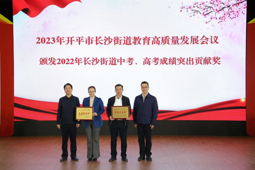 僑鄉(xiāng)春來(lái)早,教育奮進(jìn)時(shí)。為學(xué)習(xí)貫徹黨的二十大精神,響應(yīng)全省高質(zhì)量發(fā)展大會(huì)號(hào)召,2月16日下午,長(zhǎng)沙街道舉辦2023年教育高質(zhì)量發(fā)展會(huì)議,吹響長(zhǎng)沙教育高質(zhì)量發(fā)展的“沖鋒號(hào)”,進(jìn)一步弘揚(yáng)尊師重教的社會(huì)風(fēng)尚。 長(zhǎng)沙街道辦事處榮獲“2022年開(kāi)平市尊師重教先進(jìn)單位” 市委常委、市委辦公室主任伍德斌,市教育局黨組書(shū)記、局長(zhǎng)張峰,長(zhǎng)沙街道黨工委書(shū)記朱喬,長(zhǎng)沙街道黨工委副書(shū)記、辦事處主任周崇儉,長(zhǎng)沙街道人大工委主任孫煥銘,長(zhǎng)沙街道領(lǐng)導(dǎo)班子成員、有關(guān)部門(mén)負(fù)責(zé)人、各村(社區(qū))黨組織書(shū)記,長(zhǎng)沙商會(huì)有關(guān)企業(yè)代表,長(zhǎng)沙街道轄區(qū)的中小學(xué)校正副校長(zhǎng)、幼兒園園長(zhǎng),以及獲獎(jiǎng)的“百名優(yōu)秀教師”參加了會(huì)議。會(huì)議由長(zhǎng)沙街道辦事處副主任周秀玲主持。 領(lǐng)導(dǎo)發(fā)言 鼓舞斗志 指明方向 會(huì)議上,朱喬書(shū)記指出,廣東新春第一會(huì),全省高質(zhì)量發(fā)展大會(huì)對(duì)教育工作提出了新要求。在我市“狠抓落實(shí)年”,長(zhǎng)沙教育將緊跟步伐,結(jié)合“百縣千鎮(zhèn)萬(wàn)村高質(zhì)量發(fā)展工程”,加快建設(shè)高質(zhì)量教育體系,辦好人民滿(mǎn)意的教育。同時(shí),提出四點(diǎn)希望:一是各學(xué)校要以打造優(yōu)質(zhì)均衡教育為己任,在抓尖子、幫后進(jìn)、促平衡上下功夫,形成你超我趕、齊頭并進(jìn)的風(fēng)氣;二是校長(zhǎng)要發(fā)揮主觀能動(dòng)性,帶好教師隊(duì)伍,抓好校風(fēng)建設(shè),提高教育質(zhì)量;三是老師要發(fā)揮先鋒模范作用,管好每一名學(xué)生、每一個(gè)班、每一個(gè)年級(jí);四是社會(huì)各界人士、企業(yè)家獻(xiàn)出更多的愛(ài)心支持長(zhǎng)沙教育事業(yè)發(fā)展。 周崇儉主任宣讀《關(guān)于表彰長(zhǎng)沙街道先進(jìn)單位、優(yōu)秀教師的決定》,希望受表彰的先進(jìn)單位和個(gè)人,開(kāi)拓創(chuàng)新,再創(chuàng)佳績(jī)。號(hào)召?gòu)V大教職工、各部門(mén)及社會(huì)各界以先進(jìn)典型為榜樣,以飽滿(mǎn)的精神,以?shī)^進(jìn)的作風(fēng),以扎實(shí)的工作,共同推動(dòng)長(zhǎng)沙街道教育高質(zhì)量發(fā)展! 廣東金輝華集團(tuán)有限公司周錫峰主席作為企業(yè)代表發(fā)言,表示將努力擔(dān)當(dāng)企業(yè)應(yīng)盡的社會(huì)責(zé)任,一如既往地支持教育事業(yè),為“文明長(zhǎng)沙、活力長(zhǎng)沙、和諧長(zhǎng)沙”高質(zhì)量發(fā)展添磚加瓦。 張峰局長(zhǎng)表示,今年是全面貫徹落實(shí)黨的二十大精神的開(kāi)局之年,也是長(zhǎng)沙街道教育邁向現(xiàn)代化之年。在這一關(guān)鍵之年,要緊緊圍繞市委、市政府中心工作,聚焦立德樹(shù)人,聚焦教育強(qiáng)市,堅(jiān)持以人民為中心,帶著情懷辦教育,帶著責(zé)任辦教育,以高質(zhì)量發(fā)展加快推進(jìn)教育現(xiàn)代化建設(shè)。并提出三點(diǎn)希望:一是立德樹(shù)人,用心辦好人民滿(mǎn)意的教育;二是堅(jiān)守初心,全力打造新時(shí)代高素質(zhì)教師隊(duì)伍;三是凝心聚力,優(yōu)先支持教育事業(yè)發(fā)展。 匯聚力量 尊師重教 弘揚(yáng)風(fēng)氣 長(zhǎng)沙街道素有崇文重教的優(yōu)良傳統(tǒng),形成了“黨以重教為先、政以興教為本、師以從教為榮、民以助教為責(zé)”的良好氛圍。政府、社會(huì)、學(xué)校將共同努力,把興學(xué)重教的優(yōu)良傳統(tǒng)傳承下去。 2022年長(zhǎng)沙街道發(fā)動(dòng)熱心企業(yè)和鄉(xiāng)賢捐款103.9萬(wàn)元支持教育事業(yè)發(fā)展,創(chuàng)歷年新高。各熱心企業(yè)即使在疫情影響較大的情況下,一如既往支持教育,獎(jiǎng)勵(lì)師生,以實(shí)際行動(dòng)回報(bào)社會(huì),體現(xiàn)了企業(yè)擔(dān)當(dāng)社會(huì)責(zé)任。會(huì)議舉行捐贈(zèng)長(zhǎng)沙街道中小學(xué)獎(jiǎng)教金支票交接儀式,以及對(duì)23家熱心企業(yè)授予“2022年長(zhǎng)沙街道尊師重教先進(jìn)單位”牌匾。 強(qiáng)師興教 獎(jiǎng)勵(lì)先進(jìn) 樹(shù)立典型 “只有高質(zhì)量的教師,才有高質(zhì)量的教育”。多年來(lái),長(zhǎng)沙街道努力打造一支高素質(zhì)、專(zhuān)業(yè)化、創(chuàng)新型教師隊(duì)伍,涌現(xiàn)一大批名校長(zhǎng)、名教師、名班主任和學(xué)科帶頭人。特別在新冠感染防疫工作方面,全體教師展現(xiàn)師者擔(dān)當(dāng),奮戰(zhàn)疫情防控第一線(xiàn),確保師生平安、校園穩(wěn)定。 長(zhǎng)沙街道精心策劃“百名優(yōu)秀教師”獎(jiǎng)項(xiàng),設(shè)置33.5萬(wàn)元獎(jiǎng)教金,獎(jiǎng)勵(lì)優(yōu)秀教師105名,其中幼兒園5名,小學(xué)60名,高中、初中40名,營(yíng)造出尊師重教、興學(xué)育才的良好氛圍。獎(jiǎng)勵(lì)優(yōu)秀老師,必將營(yíng)造崇文重教的氛圍,吸引更多高層次教育人才扎根開(kāi)平,為高質(zhì)量發(fā)展儲(chǔ)備人才。 2022年長(zhǎng)沙街道中考、高考成績(jī)突出貢獻(xiàn)獎(jiǎng) 2022年長(zhǎng)沙街道小學(xué)“十佳教師” 2022年長(zhǎng)沙街道中學(xué)