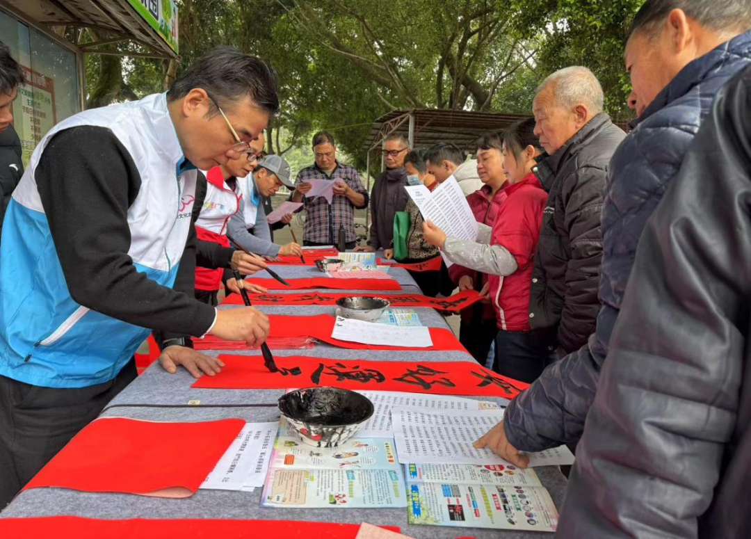 活動現(xiàn)場,翰墨飄香,歡聲一片。書法家躬身提筆,濡墨揮毫;現(xiàn)場觀眾駐足欣賞,絡(luò)繹不絕。一個個年味濃濃的福字,一幅幅火紅鮮艷的春聯(lián),既有辭舊迎新的美好愿景,也有平安吉祥、和諧發(fā)展的勵志高歌,表達(dá)了人民群眾對美好生活的向往。本次活動共送出了150多幅春聯(lián)和100多個福字,得到了群眾的廣泛贊譽和好評。此次活動不僅讓群眾感受到節(jié)日的溫暖以及書法藝術(shù)的魅力,還增添了濃厚的節(jié)日氛圍,營造了迎新接福、樂享美好生活的喜慶祥和氣氛。
