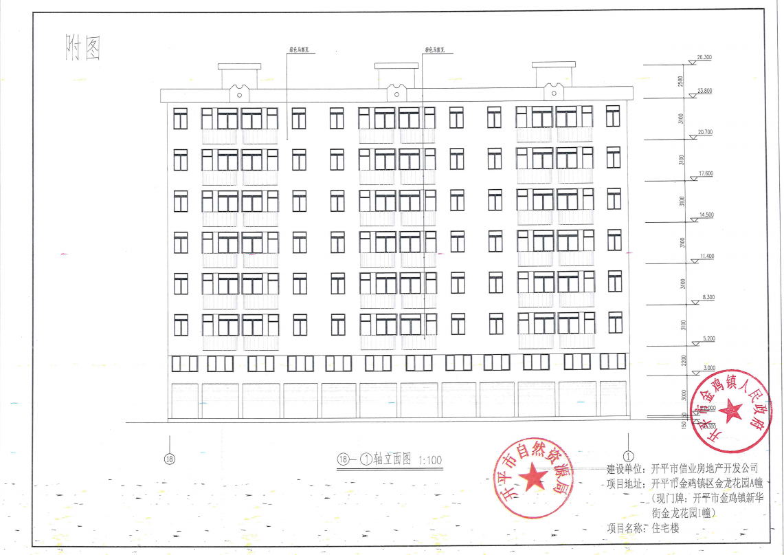 關(guān)于開平市金雞鎮(zhèn)區(qū)金龍花園 A、B幢住宅樓建筑設(shè)計方案和圖紙的公示