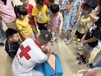講師通過安全教育視頻解析典型案例,帶領(lǐng)孩子們逐條解讀“防溺水六不準”,結(jié)合“同伴落水如何正確呼救”“陌生水域能否戲水”等情景問答,明確自防邊界。開平市紅十字會講師重點演示心肺復蘇(CPR)全流程,從環(huán)境安全判斷到按壓深度、頻率把控,手把手糾正孩子們的實操動作,確保自救技能規(guī)范到位。
