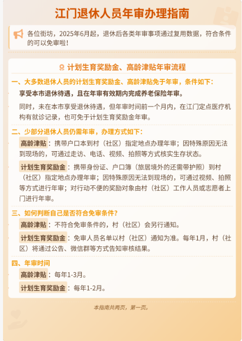 2.對于未在江門領(lǐng)取養(yǎng)老保險待遇的退休人員,暫時無法享受“一次認證、綜合運用”的便利服務,按照原方式進行年審。
