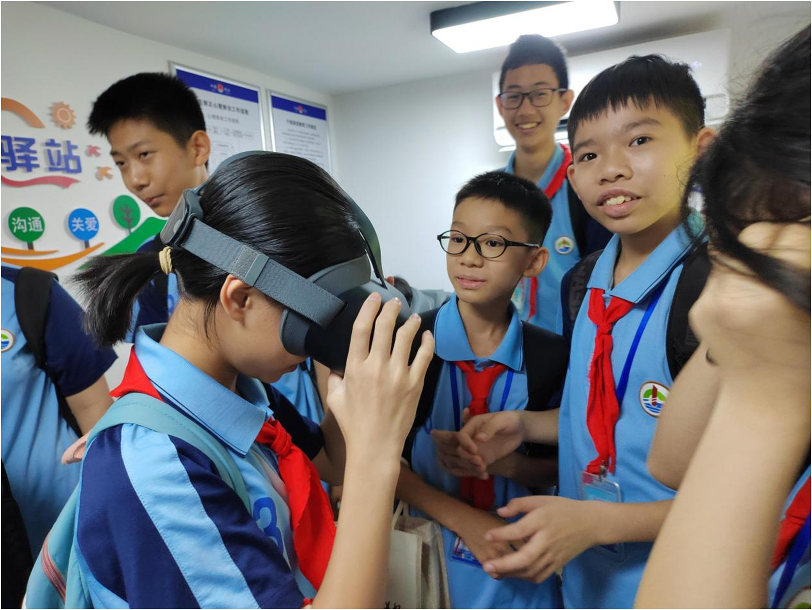 “同學(xué)們,你們知道什么是社區(qū)矯正嗎?”江門監(jiān)獄派駐警察黃振喜警官首先向?qū)W生們介紹了社區(qū)矯正的定義、目的和由來,讓師生們更全面了解社區(qū)矯正工作。實(shí)地參觀過程中,工作人員向師生們講解了社區(qū)矯正中心整體區(qū)域布局、“三區(qū)十九室”功能配置和智能化設(shè)備等,帶領(lǐng)大家參觀了指揮中心、報(bào)到大廳、宣告室、心理咨詢室、禁毒基地等辦公區(qū)域。同學(xué)們實(shí)地體驗(yàn)具有心理測試功能的沙盤沙畫和模擬毒駕的VR系統(tǒng),對社區(qū)矯正所彰顯的“法度”與“溫度”有了更加直觀深刻的理解,進(jìn)一步加深對我市近年來社區(qū)矯正工作的規(guī)范化建設(shè)和數(shù)字化實(shí)踐成果的認(rèn)識。