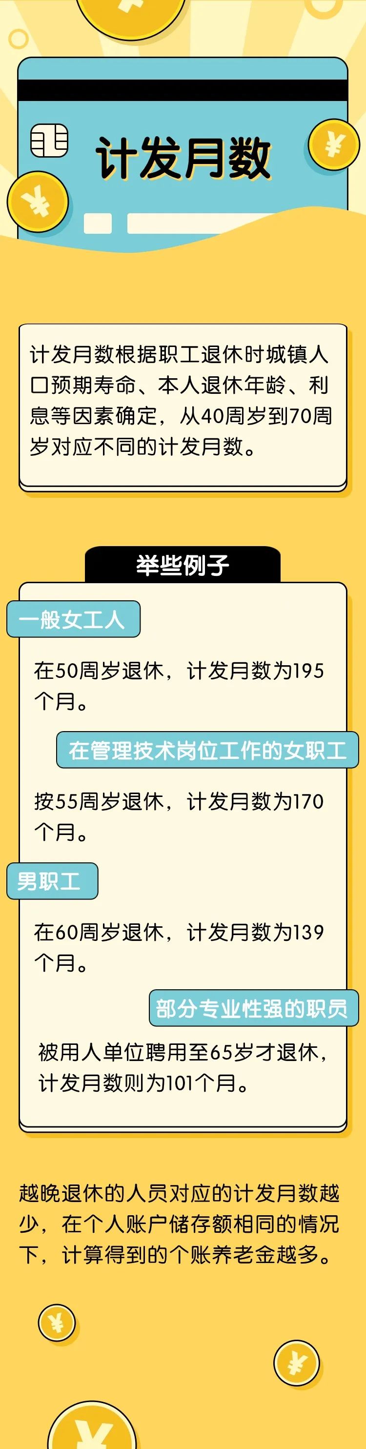 退休時(shí),個(gè)人賬戶(hù)養(yǎng)老金=本人首次領(lǐng)取基本養(yǎng)老金時(shí)個(gè)人賬戶(hù)儲(chǔ)存額÷計(jì)發(fā)月數(shù)。