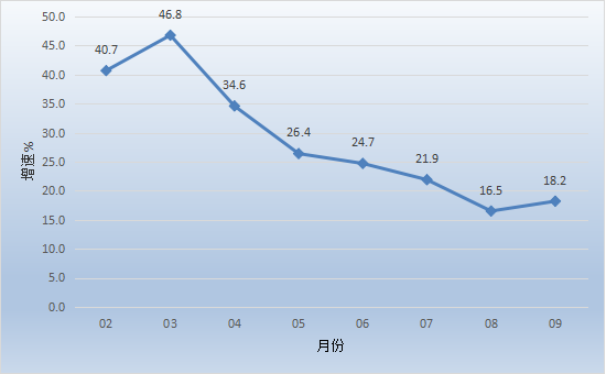 開平市1-9月經濟運行簡況 1-9月,全市主要經濟指標運行簡況如下: 一、工業(yè)生產 1-9月,開平規(guī)模以上工業(yè)企業(yè)累計完成工業(yè)增加值89.32億元,同比增長18.2%。 分經濟類型看,股份制企業(yè)增長34.7%;外商及港澳臺商投資企業(yè)增長7.6%;私營企業(yè)增長25.8%。分門類看,采礦業(yè)增加值增長3.1%,制造業(yè)增加值增長18.3%,電力、熱力、燃氣及水生產和供應業(yè)增加值增長16.7%。 1-9月全市工業(yè)用電量增長21.0%。 圖一:2021年2月以來我市工業(yè)增加值增速情況 二、投資 1-9月,全市完成固定資產投資同比增長17.9%。分經濟類型看,國有投資增長40.8%;民間投資增長38.4%。分產業(yè)看,第一產業(yè)投資增長146.1%;第二產業(yè)投資增長46.5%,其中工業(yè)投資增長46.5%;第三產業(yè)投資增長2.9%,其中房地產投資下降21.7%。 三、消費市場 1-9月,我市完成社會消費品零售總額133.83億元,同比增長12.1%。 圖二:2021年2月以來我市社會消費品零售總額增速情況 四、財政收入 1-9月,全市實現(xiàn)地方一般公共預算收入24.34億元,同比增長14.7%,其中稅收收入13.07億元,同比增長17.2%。 五、金融市場 1-9月,全市金融機構本外幣各項存款余額755.99億元,同比增長5.2%;本外幣各項貸款余額523.10億元,同比增長11.9%。全市金融機構人民幣各項存款余額738.32億元,同比增長5.4%;人民幣各項貸款余額522.18億元,同比增長11.8%。