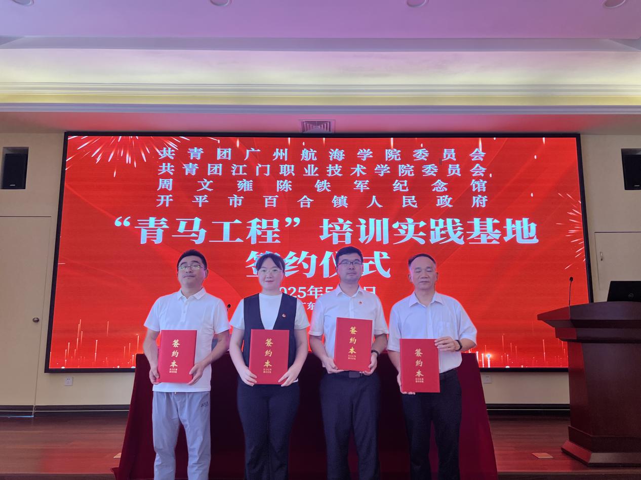 近日,廣州航海學院、江門職業(yè)技術學院“青馬班”培訓實踐基地在周文雍陳鐵軍烈士紀念館掛牌。雙方簽訂館校合作協(xié)議,開展“青馬”學員培訓講座,參觀展館研習周文雍夫婦革命事跡。廣州航海學院黨委副書記、江門職業(yè)技術學院黨委副書記、百合鎮(zhèn)分管黨建副書記、百合鎮(zhèn)“雙百行動”分管領導、退役軍人事務局領導出席。