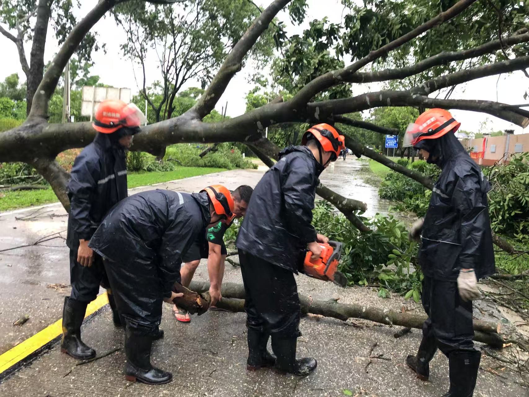 今年第6號(hào)臺(tái)風(fēng)“韋帕”來勢洶洶,為我市帶來狂風(fēng)暴雨極端天氣,防御形勢極其嚴(yán)峻。為切實(shí)做好防汛防臺(tái)風(fēng)工作,開平市應(yīng)急救援大隊(duì)聞令而動(dòng),迅速投入到防御臺(tái)風(fēng)的各項(xiàng)工作中,將保障人民群眾生命財(cái)產(chǎn)安全作為首要使命,全力以赴筑牢安全防線。 為全方位做好“韋帕”臺(tái)風(fēng)防御工作,7月19日起,市應(yīng)急救援大隊(duì)全體隊(duì)員取消休假,全員進(jìn)入備勤狀態(tài),時(shí)刻保持高度警惕,嚴(yán)陣以待。同時(shí),大隊(duì)組織專業(yè)人員對(duì)應(yīng)急救援物資裝備進(jìn)行全面的維修和保養(yǎng),確保每一件裝備都能隨時(shí)投入戰(zhàn)斗。并緊急部署安排隊(duì)員前往赤水鎮(zhèn)、大沙鎮(zhèn)、赤坎鎮(zhèn)靠前駐防,時(shí)刻緊盯臺(tái)風(fēng)動(dòng)態(tài),其余隊(duì)員留守營區(qū)隨時(shí)整裝待發(fā),應(yīng)對(duì)各類突發(fā)狀況。此外,積極與當(dāng)?shù)劓?zhèn)政府溝通協(xié)作,深入排查可能存在的風(fēng)險(xiǎn)隱患點(diǎn),提前謀劃并制定相應(yīng)的應(yīng)對(duì)處理措施。 臺(tái)風(fēng)登陸期間,強(qiáng)風(fēng)致使我市部分道路出現(xiàn)樹木倒塌現(xiàn)象,嚴(yán)重阻礙交通通行,威脅群眾出行安全。大隊(duì)第一時(shí)間組織力量展開道路清障行動(dòng),隊(duì)員們頂風(fēng)冒雨,借助油鋸和高枝鋸,對(duì)倒伏樹木進(jìn)行切割、搬運(yùn),及時(shí)清除了路障。據(jù)統(tǒng)計(jì),受"韋帕"臺(tái)風(fēng)影響,7月20日,市應(yīng)急救援大隊(duì)累計(jì)配合大沙鎮(zhèn)、赤水鎮(zhèn)、市政園林服務(wù)中心,處置因臺(tái)風(fēng)引發(fā)的道路障礙13處,共出動(dòng)救援力量27人次,有效保障了相關(guān)鎮(zhèn)和市區(qū)龍山水庫Y769路線等道路暢通和群眾出行安全,目前大隊(duì)正加強(qiáng)重點(diǎn)路段巡查,持續(xù)保持高度警惕,繼續(xù)做好臺(tái)風(fēng)防御應(yīng)對(duì)工作。 在此次防御“韋帕”臺(tái)風(fēng)的戰(zhàn)斗中,開平市應(yīng)急救援大隊(duì)始終堅(jiān)守在抗擊臺(tái)風(fēng)的最前沿,以無畏的勇氣、堅(jiān)定的信念和頑強(qiáng)的作風(fēng),用實(shí)際行動(dòng)生動(dòng)詮釋了“對(duì)黨忠誠、紀(jì)律嚴(yán)明、赴湯蹈火、竭誠為民”的錚錚誓言。