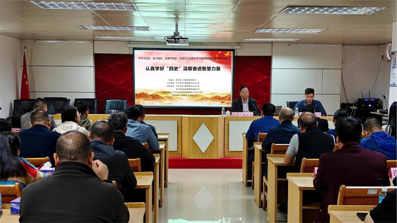 為扎實(shí)推進(jìn)開平市黨史、新中國(guó)史、改革開放史、社會(huì)主義發(fā)展史的宣傳教育,引導(dǎo)干部職工深刻感悟蘊(yùn)含于歷史中的智慧,汲取奮進(jìn)的力量,為企業(yè)改革發(fā)展注入強(qiáng)勁動(dòng)能。12月3日上午,開平市資產(chǎn)辦聯(lián)合市農(nóng)控集團(tuán)公司開展開平市“四史”學(xué)習(xí)宣傳教育進(jìn)企業(yè)系列活動(dòng),邀請(qǐng)開平市委宣講團(tuán)成員梁東想帶來(lái)一場(chǎng)以“認(rèn)真學(xué)好‘四史’,汲取奮進(jìn)智慧力量”為主題的開平市“四史”專題宣講會(huì)。集團(tuán)公司全體班子成員、干部職工,下屬企業(yè)經(jīng)營(yíng)班子及各市場(chǎng)站負(fù)責(zé)人共40余人參加宣講會(huì)。 宣講中,梁東想同志以開平市黨史、新中國(guó)史、改革開放史、社會(huì)主義發(fā)展史為脈絡(luò)主線,用豐富的歷史資料、生動(dòng)的語(yǔ)言,講述了開平紅色故事、黨和國(guó)家的奮斗歷程,讓大家深刻解讀“四史”的深刻內(nèi)涵與重要意義,體會(huì)到今日美好生活的來(lái)之不易,堅(jiān)定理想信念,以實(shí)際行動(dòng)踐行初心使命,在新時(shí)代新征程中彰顯國(guó)企干部的擔(dān)當(dāng)作為。 下一步,市農(nóng)控集團(tuán)公司將把學(xué)習(xí)貫徹黨的二十屆四中全會(huì)精神與深化“四史”宣傳教育有機(jī)結(jié)合,持續(xù)深化理論武裝,推動(dòng)“四史”學(xué)習(xí)教育走深走實(shí),為推進(jìn)中國(guó)式現(xiàn)代化建設(shè)、開平市高質(zhì)量發(fā)展而努力奮斗!