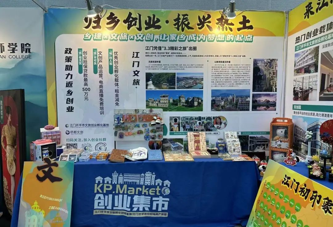 開平市持續(xù)推動返鄉(xiāng)入鄉(xiāng)創(chuàng)業(yè)工作,充分發(fā)揮平臺優(yōu)勢,為青年返鄉(xiāng)入鄉(xiāng)提供“一站式”的創(chuàng)業(yè)就業(yè)服務(wù),吸引著一批又一批青年創(chuàng)業(yè)者利用開平豐富的農(nóng)文旅資源,返鄉(xiāng)入鄉(xiāng)描繪創(chuàng)業(yè)夢想的藍(lán)圖。招聘會當(dāng)天的僑鄉(xiāng)特色文創(chuàng)展位上展示了多家入駐江門開平市文旅創(chuàng)業(yè)孵化基地(下稱基地)的企業(yè)以及坐落于開平的廣東首家先鋒書店的最新文創(chuàng)產(chǎn)品,近百款的文創(chuàng)產(chǎn)品囊括了冰箱貼、鑰匙扣、明信片等常見的小物件,也有鉤織糧倉、“鵝們”公仔、碉樓微景觀模型等定制類、IP類特有款式,每一款都能讓求職者領(lǐng)略到僑鄉(xiāng)文化與開平特色。