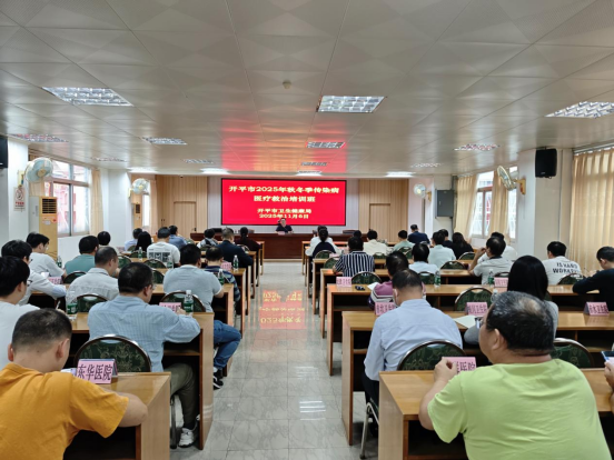 為切實(shí)做好我市秋冬季傳染病防治各項(xiàng)工作,持續(xù)提升醫(yī)務(wù)人員對(duì)重點(diǎn)傳染病的早期識(shí)別、規(guī)范診療等能力,11月6日下午,開平市衛(wèi)生健康局舉辦開平市2025年秋冬季傳染病醫(yī)療救治培訓(xùn)班,全市醫(yī)療機(jī)構(gòu)分管領(lǐng)導(dǎo)及相關(guān)科室負(fù)責(zé)同志參加培訓(xùn)。