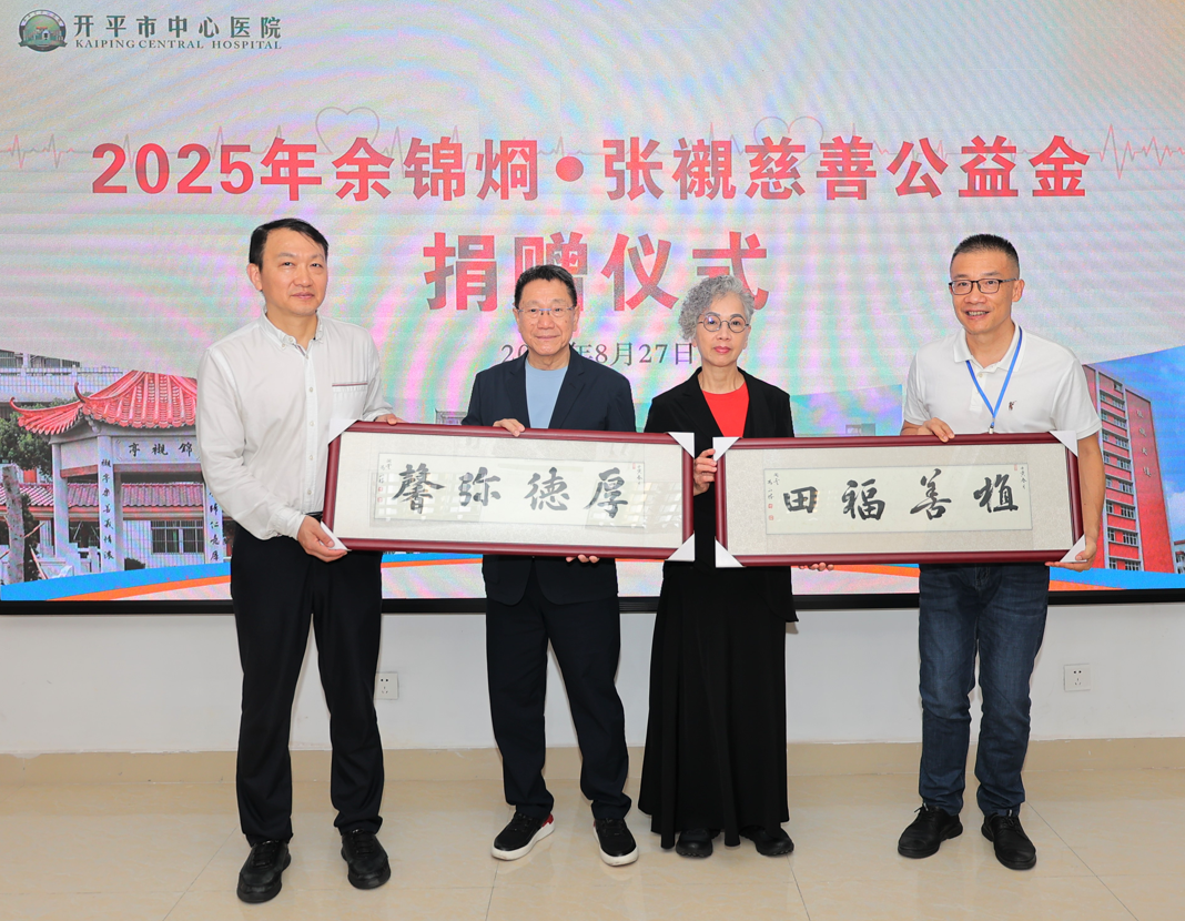 8月27日上午,余卓兒、林翠薇伉儷一行到開平市中心醫(yī)院開展愛心捐贈儀式暨交流座談會,以拳拳赤子心、殷殷桑梓情,為開平醫(yī)療衛(wèi)生事業(yè)高質(zhì)量發(fā)展添磚加瓦。開平市領(lǐng)導(dǎo)伍德斌、梁俏筠出席活動。