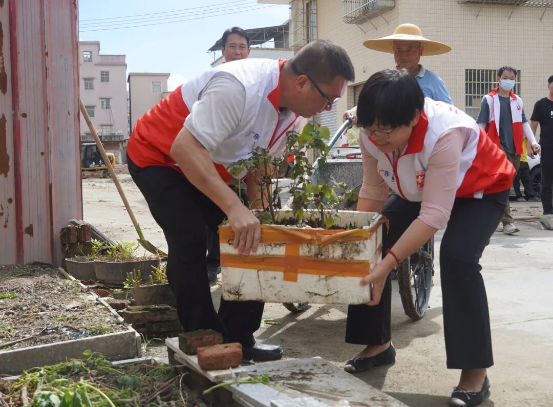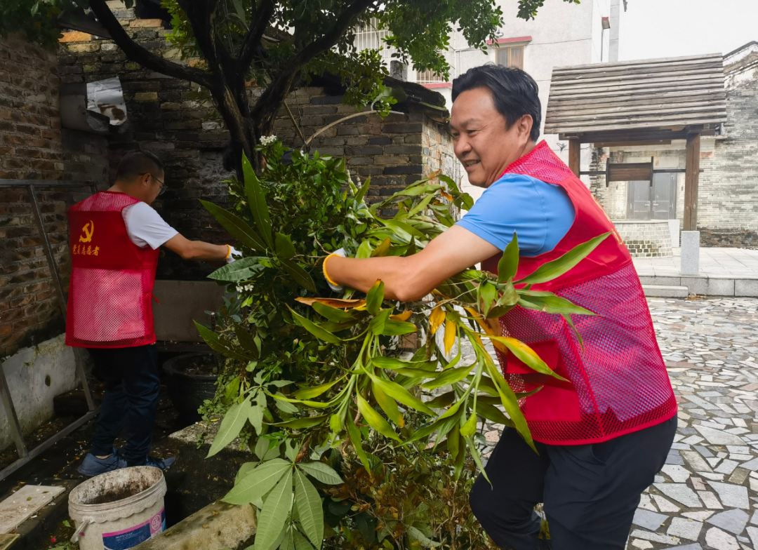 在三埠街道星光塘基里村,余中華一行與黨員干部、志愿者和居民清理蕉園垃圾。大家分工明確、配合默契,一邊用鐵鏟將垃圾鏟入推車,一邊用推車清運(yùn)垃圾,鏟除蚊蟲孳生隱患。