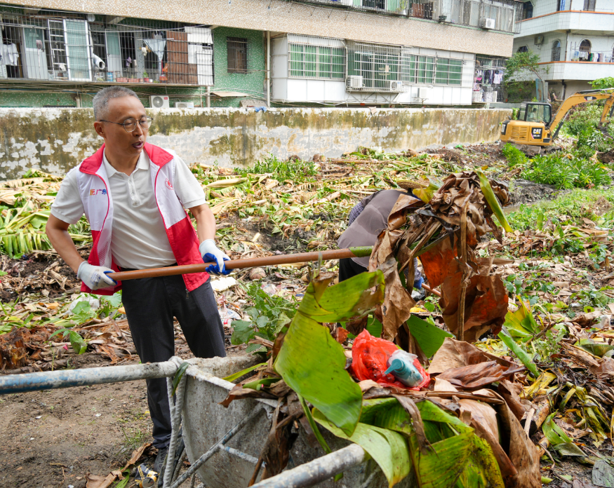 在長(zhǎng)沙街道南島社區(qū),陳冀與黨員先鋒隊(duì)、社區(qū)干部及群團(tuán)志愿者通力合作,清理道路兩旁、樹蔭下以及排水溝中的雨后積水、落葉斷枝、垃圾雜物和衛(wèi)生死角。大家齊心協(xié)力,清除蚊蟲孳生環(huán)境,加速恢復(fù)社區(qū)整潔、有序、健康的生活面貌。