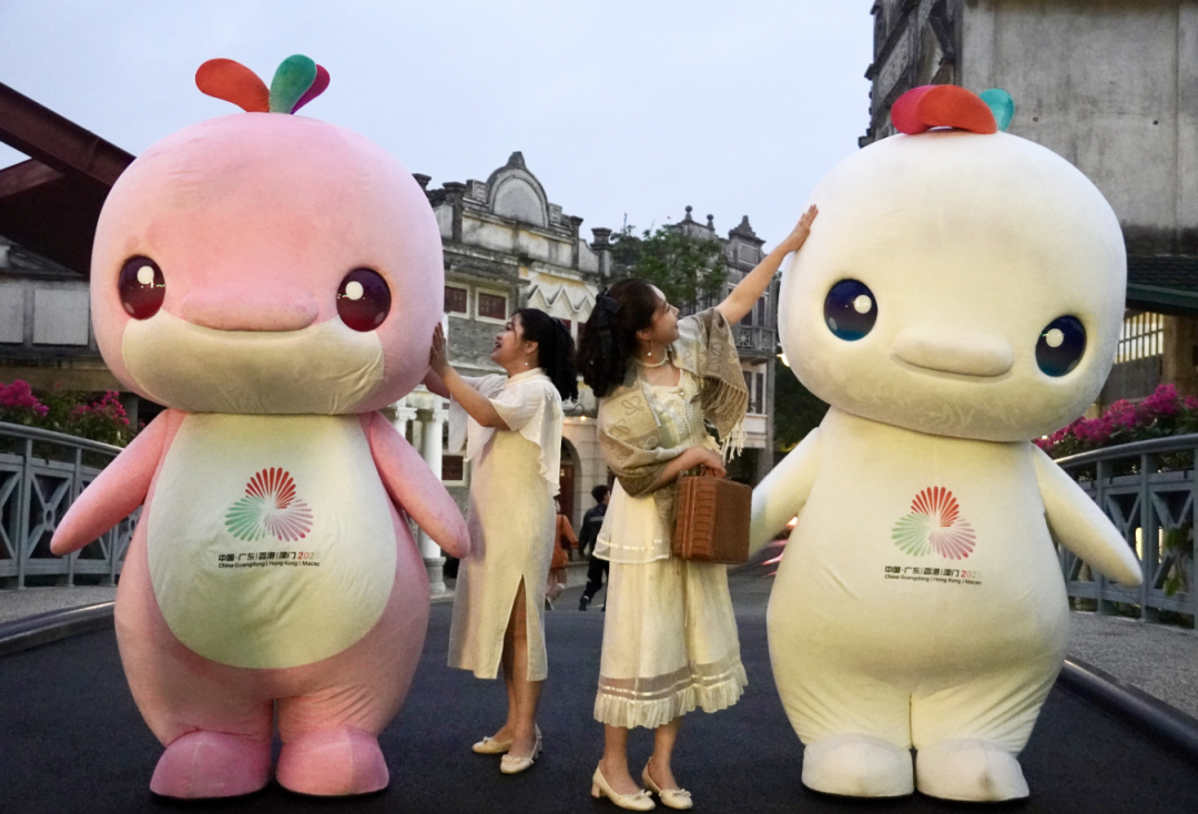 十五運會吉祥物走進赤坎華僑古鎮(zhèn)。