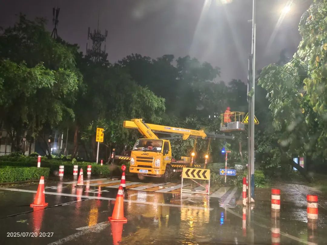 開(kāi)平市黨員干部嚴(yán)陣以待、聞令而動(dòng),到避難場(chǎng)所、露營(yíng)野游點(diǎn)、在建工地、省道易澇點(diǎn)和地質(zhì)災(zāi)害隱患點(diǎn)等重點(diǎn)部位開(kāi)展防汛安全隱患排查,加強(qiáng)排澇設(shè)施維護(hù),做好應(yīng)急救援物資儲(chǔ)備。全體社區(qū)工作者取消休假,深入一線走訪群眾,排除臺(tái)風(fēng)隱患,全力以赴做好臺(tái)風(fēng)防御工作。各村(社區(qū))干部入村入戶開(kāi)展防風(fēng)宣傳,做好危房群眾臨災(zāi)轉(zhuǎn)移和安置管理工作。 他們擔(dān)當(dāng)作為,守護(hù)家園安全有序 三埠街道石海村石海大道上,路燈在狂風(fēng)驟雨中倒伏,造成交通擁堵。石海村干部第一時(shí)間趕到現(xiàn)場(chǎng),不顧自身安危,頂著狂風(fēng)驟雨移開(kāi)路燈,迅速消除交通隱患…… 臺(tái)風(fēng)期間,各鎮(zhèn)(街道)積極開(kāi)展防御和應(yīng)急處置工作。基層干部第一時(shí)間行動(dòng),針對(duì)倒伏路燈、樹(shù)木等障礙及時(shí)清理,保障道路交通暢通;加強(qiáng)對(duì)在建工地、山塘水庫(kù)、危破房等重點(diǎn)區(qū)域的安全隱患排查,督促落實(shí)防御措施。同時(shí),深入排查群眾底數(shù),提前做好困難群眾、特殊群體等危險(xiǎn)區(qū)域人員的臨災(zāi)轉(zhuǎn)移,并開(kāi)放應(yīng)急避難場(chǎng)所,儲(chǔ)備搶險(xiǎn)物資,為有需要的群眾提供救助安置。此外,通過(guò)多種渠道發(fā)布預(yù)警信息、開(kāi)展防風(fēng)宣傳,提升群眾安全防范意識(shí)。 他們沖鋒在前,守護(hù)群眾安全 臺(tái)風(fēng)來(lái)臨前,市公安局僑園路派出所民警與長(zhǎng)沙街道辦事處及村委會(huì)干部緊密協(xié)作,深入村落,將行動(dòng)不便的游耕戶妥善轉(zhuǎn)移到臨時(shí)安置點(diǎn)。 臺(tái)風(fēng)來(lái)襲,開(kāi)平的道路有大樹(shù)倒伏,阻礙交通。開(kāi)平公安與消防、公路等部門工作人員,迅速奔赴現(xiàn)場(chǎng),合力將樹(shù)枝移走,及時(shí)恢復(fù)道路暢通。 在風(fēng)雨中,蜆岡派出所民警聯(lián)合鎮(zhèn)政府人員,不懼風(fēng)雨,乘船登島,勸漁民上岸并幫忙把小漁船搬到安全地點(diǎn)。 開(kāi)平市消防救援大隊(duì)接到群眾求助,市內(nèi)一住宅樓的樓道玻璃窗在大風(fēng)中懸空搖晃,隨時(shí)可能墜落傷人。三埠街道專職消防隊(duì)趕往現(xiàn)場(chǎng)拆卸,成功排除隱患。 他們協(xié)同排查,筑牢防風(fēng)防汛安全防線 開(kāi)平各相關(guān)部門迅速行動(dòng),開(kāi)展防風(fēng)防汛隱患排查工作。市農(nóng)業(yè)農(nóng)村局、市文廣旅體局、市應(yīng)急管理局等派出檢查組深入各鎮(zhèn)(街道),對(duì)排洪灌溉設(shè)施、旅游景區(qū)、企業(yè)、村(居)應(yīng)急避災(zāi)場(chǎng)所等進(jìn)行全面檢查,對(duì)發(fā)現(xiàn)的安全隱患要求立即整改,同時(shí)督促各相關(guān)單位加強(qiáng)巡查,建立隱患排查整治臺(tái)賬,切實(shí)筑牢防風(fēng)防汛安全防線。 開(kāi)平供電局在臺(tái)風(fēng)登陸前針對(duì)江河洪水、城市內(nèi)澇、山洪災(zāi)害和地質(zhì)災(zāi)害的相關(guān)區(qū)域開(kāi)展特巡,全局人員在崗值班,配備應(yīng)急發(fā)電車、應(yīng)急發(fā)電機(jī)等設(shè)備,為“災(zāi)中守”和“災(zāi)后搶”做好準(zhǔn)備。 他們?nèi)找箠^戰(zhàn),保障城市運(yùn)行通暢 開(kāi)平市城市管理和綜合執(zhí)法局迅速啟動(dòng)應(yīng)急機(jī)制,組織環(huán)衛(wèi)工人9000多人次,清疏排水管網(wǎng)、雨水井,清運(yùn)垃圾4.68噸,確保排水通暢;增派園林綠化工作人員對(duì)東興大道、百匯市場(chǎng)、325國(guó)道等重點(diǎn)地段進(jìn)行清障;前置應(yīng)急泵車、搶險(xiǎn)車等裝備,對(duì)幸福路、南安路等易澇點(diǎn)實(shí)行全覆蓋監(jiān)控和駐點(diǎn)布防,全力保障群眾出行安全。 開(kāi)平公路事務(wù)中心應(yīng)急搶險(xiǎn)隊(duì)伍全面投入路面清障搶險(xiǎn)工作,對(duì)管養(yǎng)國(guó)省道路段倒伏路樹(shù)、堵塞排水設(shè)施雜物等進(jìn)行清理,爭(zhēng)分奪秒排除險(xiǎn)情,保障道路安全暢通。 開(kāi)平海事處則全面摸底排查轄區(qū)重點(diǎn)水域船舶情況,提醒督促船舶、船員提前加固錨鏈、纜繩,加強(qiáng)值班值守,轉(zhuǎn)移在船非船員,并及時(shí)發(fā)送預(yù)警信息,做好出港船舶管控。 這些風(fēng)雨中堅(jiān)守的身影 筑起了防汛抗臺(tái)風(fēng)的安全堤壩 守護(hù)著民眾生命財(cái)產(chǎn)安全 為他們點(diǎn)贊
