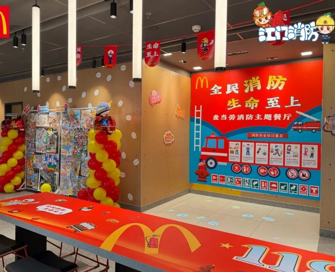 餐飲區(qū)、互動學(xué)習(xí)區(qū)、消防器材展示區(qū)三個區(qū)域