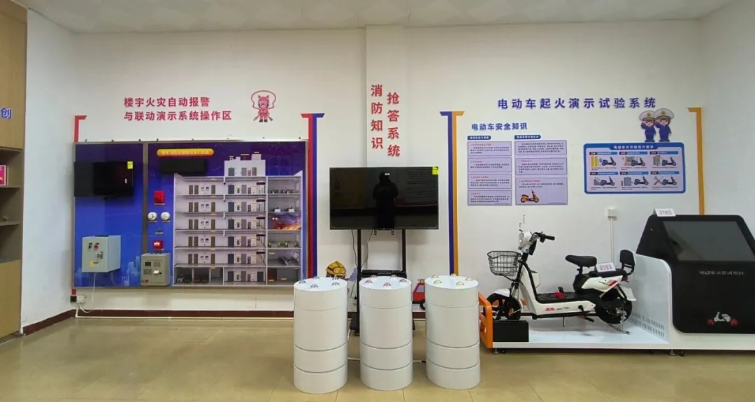 開平市消防救援大隊消防教育科普體驗(yàn)室,是江門市基層消防大隊中首家建立的消防教育科普體驗(yàn)室,面積約60平方米。該沉浸式智能科普平臺,從“防”“滅”“救”三個維度,全面展示了消防形象、知識科普、技能體驗(yàn)、設(shè)備實(shí)操、應(yīng)急救護(hù)五大展區(qū),其中配置有電動車起火模擬實(shí)驗(yàn)臺、消防知識搶答與學(xué)習(xí)、樓宇火災(zāi)報警聯(lián)動系統(tǒng)、VR火災(zāi)現(xiàn)場模擬體驗(yàn)、應(yīng)急繩結(jié)學(xué)習(xí)、消防器材展示等功能區(qū)。通過“場景+體驗(yàn)+互動”的多元化宣傳模式,讓群眾零距離體驗(yàn)和學(xué)習(xí)消防知識。