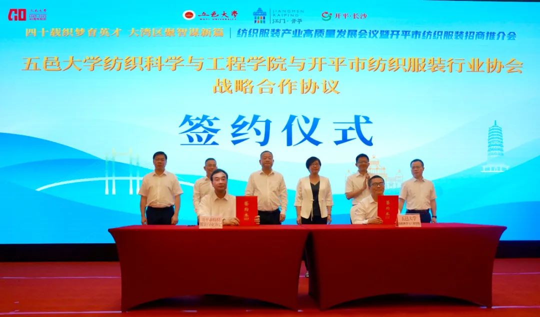 紡織服裝產(chǎn)業(yè)的發(fā)展,離不開高校的支持。五邑大學紡織科學與工程學院扎根僑鄉(xiāng)沃土,深耕紡織服裝知識和技術領域,為開平、江門乃至粵港澳大灣區(qū)培養(yǎng)輸送了大批高素質專業(yè)技術人才,是推動產(chǎn)業(yè)轉型升級的“人才搖籃”和“智力寶庫”。五邑大學黨委常委、副校長董超俊表示,今年正值五邑大學建校40周年,希望學校繼續(xù)發(fā)揮學科與科研優(yōu)勢,與開平紡織企業(yè)開展更深層次、更廣領域的產(chǎn)學研合作,共同譜寫“校地合作、協(xié)同創(chuàng)新”的新篇章。
