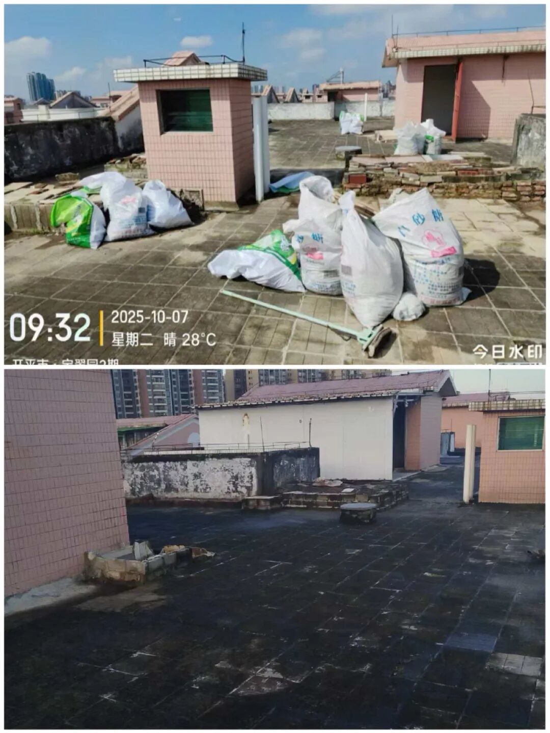 環(huán)境整治過程中,居民們也積極參與,有的主動清理自家在天臺的雜物,有的為志愿者提供工具和幫助,形成了齊心協(xié)力、共同整治的良好局面?,F(xiàn)在,從無人機視角俯瞰,寶翠園小區(qū)的天臺干凈空曠,排水管和地漏暢通無阻?!肮ぷ魅藛T來搞衛(wèi)生,用清運車和吊車,把天臺的垃圾吊下來,拆除私自搭建棚架,把天臺弄得非常干凈,居民也很配合,在家點蚊香?!睂毚鋱@小區(qū)居民關(guān)阿姨說道。小區(qū)居民吳阿姨也同樣為這次愛國衛(wèi)生運動點贊“天臺沒有搞衛(wèi)生之前,很多雜物和綠植,孳生了很多蚊蟲。現(xiàn)在走上天臺比以前好很多,沒有雜物了,環(huán)境變好了?!?/span>
