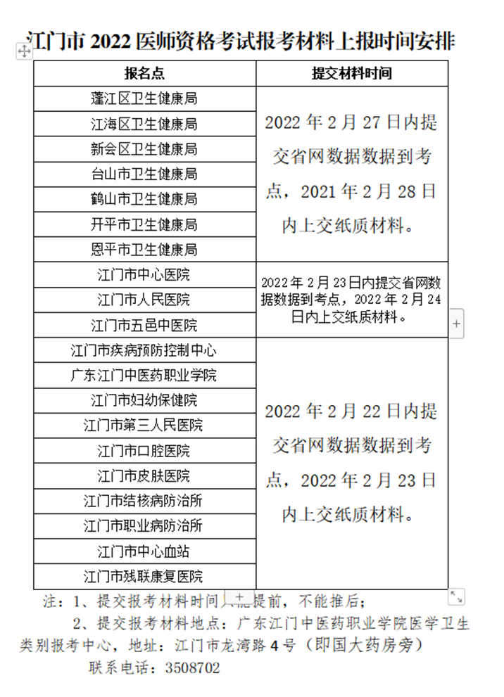 問(wèn):江門(mén)市2022醫(yī)師資格考試報(bào)考材料上報(bào)時(shí)間安排?