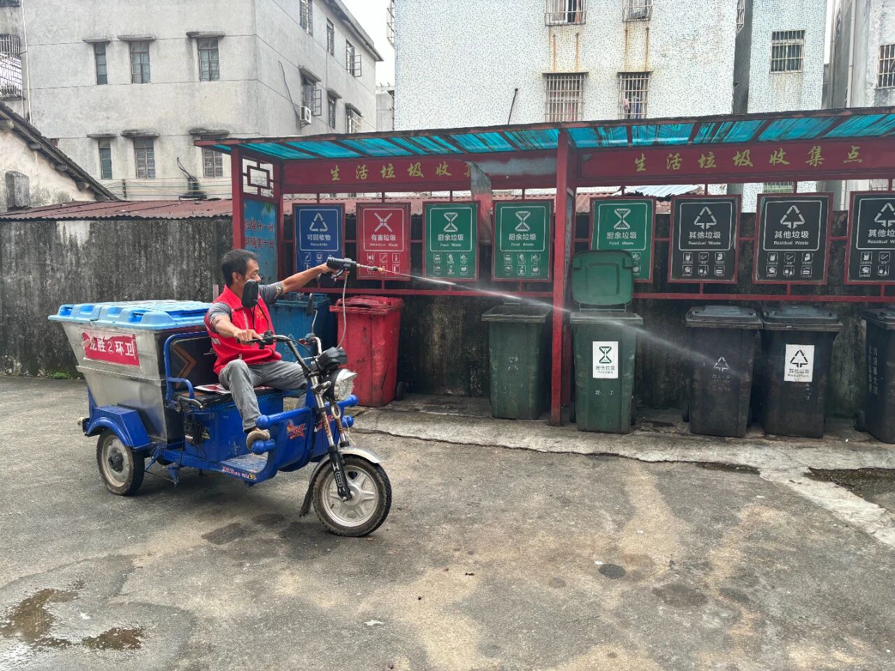 在開平市龍勝墟社區(qū),總能看到一個忙碌的身影,他時而身著迷彩服,在龍勝中學操場上帶領新生軍訓;時而在街巷間俯身清理垃圾,細致監(jiān)督環(huán)境衛(wèi)生;時而駕駛三輪車穿梭于墟鎮(zhèn),收集清運大件廢棄物;時而又背負消殺設備,堅守在防蚊滅蚊一線。這位身影的主人,正是龍勝墟社區(qū)“兩委”干部、退伍軍人——吳潤球。