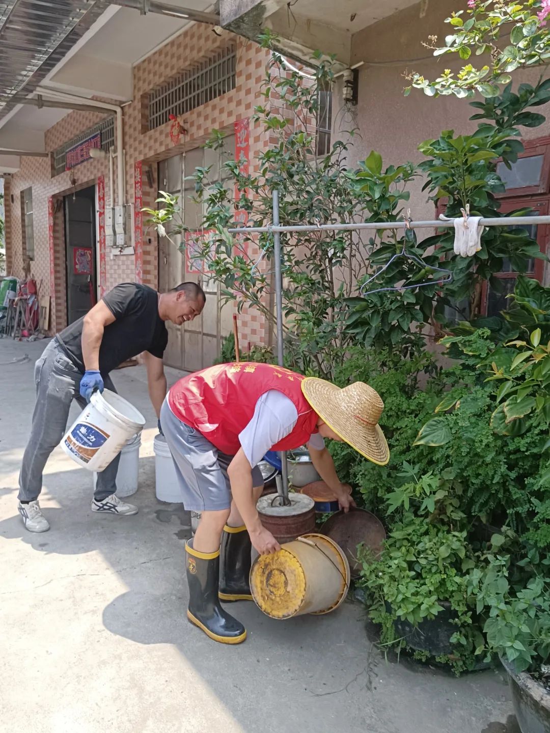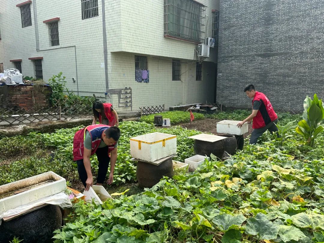 新市社區(qū)作為水口外來人口最多的社區(qū),水口鎮(zhèn)通過黨員示范帶頭,發(fā)動經(jīng)驗(yàn)豐富、責(zé)任心強(qiáng)的樓長志愿者,化身隱患排查員、政策宣傳員、群眾聯(lián)絡(luò)員,利用自身“人熟、地熟、情況熟”的優(yōu)勢,扎實(shí)開展實(shí)地檢查和宣傳講解,使防控工作更具針對性。這種“鄰里互助”的工作方式得到居民的好評和響應(yīng),許多住戶主動參與房前屋后環(huán)境整治,大大降低了蚊媒孳生風(fēng)險。