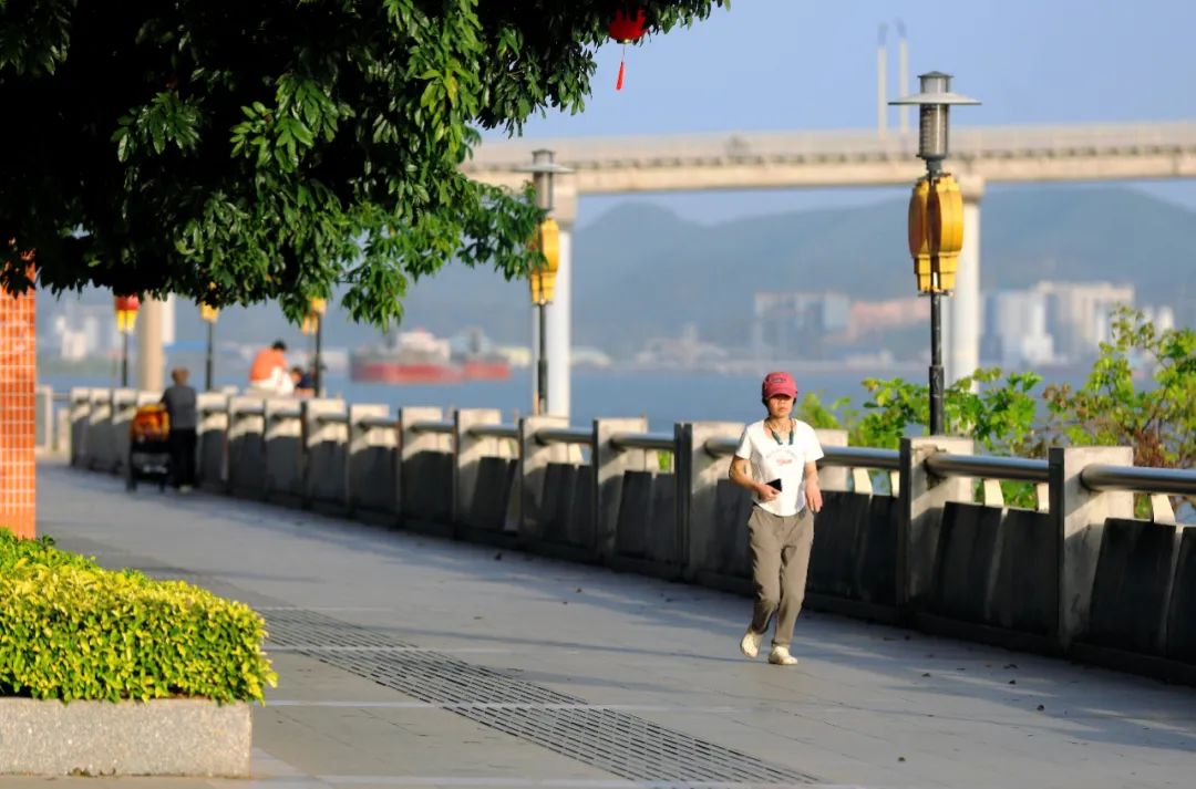 (二)升級(jí)人行步道。以打造可游、可賞、可留、可樂的全齡友好綜合性“多元空間”為目標(biāo),對(duì)濱江人行步道系統(tǒng)進(jìn)行“微改造”。建成連續(xù)貫通的騎行道、人行道1.5公里,新增河堤綠道健身標(biāo)語65塊,建有休憩石凳、科普教育、觀水露臺(tái)等設(shè)施,配齊救生繩、救生圈、防溺水警示標(biāo)志等安全設(shè)備,為市民提供更安全、更便捷、更悠閑、更舒適的濱水空間。