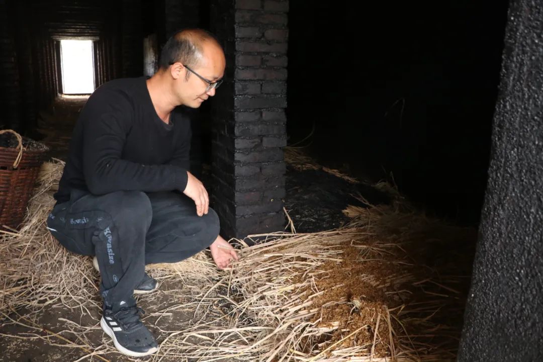 “熏烘火蒜大概需要15天時(shí)間。熏房分上下兩層,下層用來點(diǎn)燃禾稈草。我們把干的禾稈草鋪開之后,會(huì)在上方再鋪一層濕的谷殼,防止禾稈草燃燒的時(shí)候產(chǎn)生明火。燃燒禾稈草的煙熏到二層的蒜,每次大概熏兩個(gè)小時(shí),一天熏兩次,熏15天?!?/span>