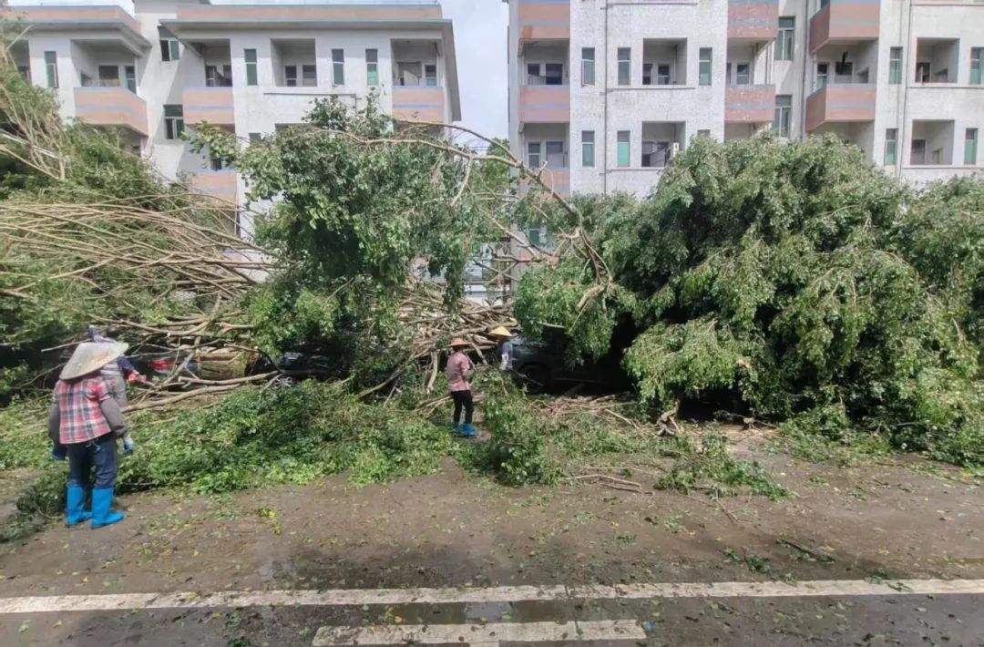 臺(tái)風(fēng)過(guò)境后,街道一片狼藉,倒伏的樹木和折斷的樹枝散落各處,厚厚的落葉覆蓋地面,低洼處積存渾濁雨水,給過(guò)往車輛和行人出行帶來(lái)極大不便。