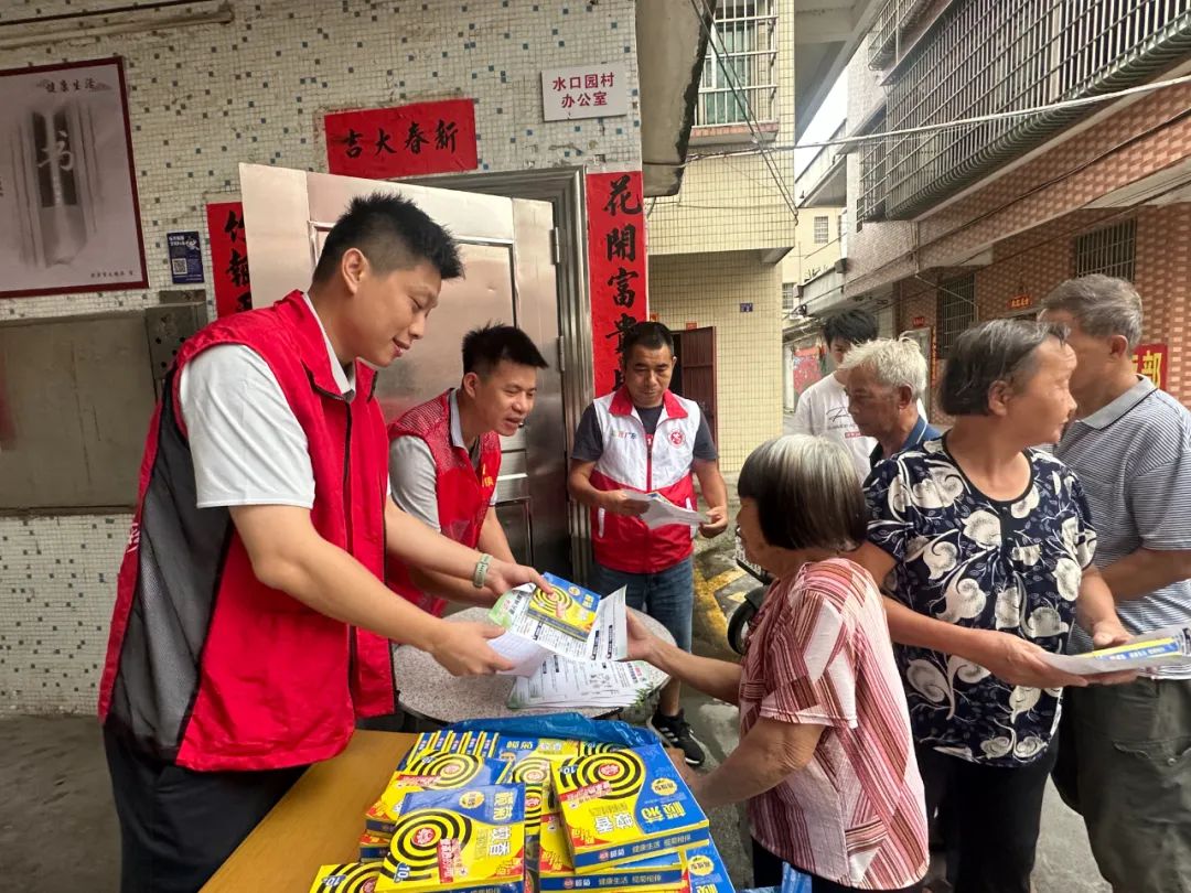 “兩熱”防控不是單打獨(dú)斗,需要廣大居民群眾的共同參與。水口鎮(zhèn)采取“線上+線下”“視覺(jué)+聽覺(jué)”的立體宣傳模式,讓防控防線越織越密。