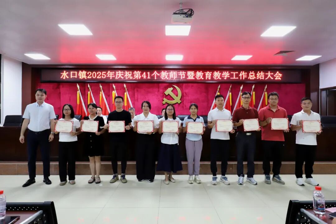 水口鎮(zhèn)人大副主席馮惠清宣讀了表彰先進決定,與會領導為榮獲2024—2025學年水口鎮(zhèn)教育教學工作先進單位(9所)、德育示范學校(5所)、德育先進個人(10人)、優(yōu)秀班主任(19人)、優(yōu)秀教師(33人)等先進集體和先進個人頒獎,并向全鎮(zhèn)教師、教育工作者及離退休教師致以節(jié)日的誠摯問候和崇高敬意。