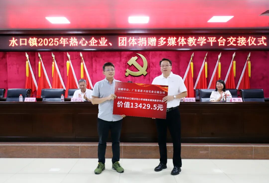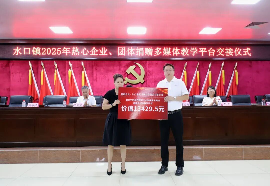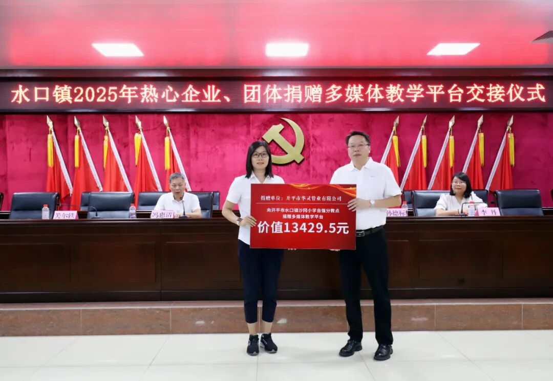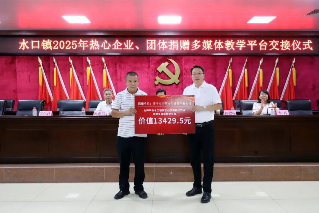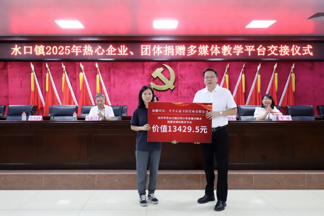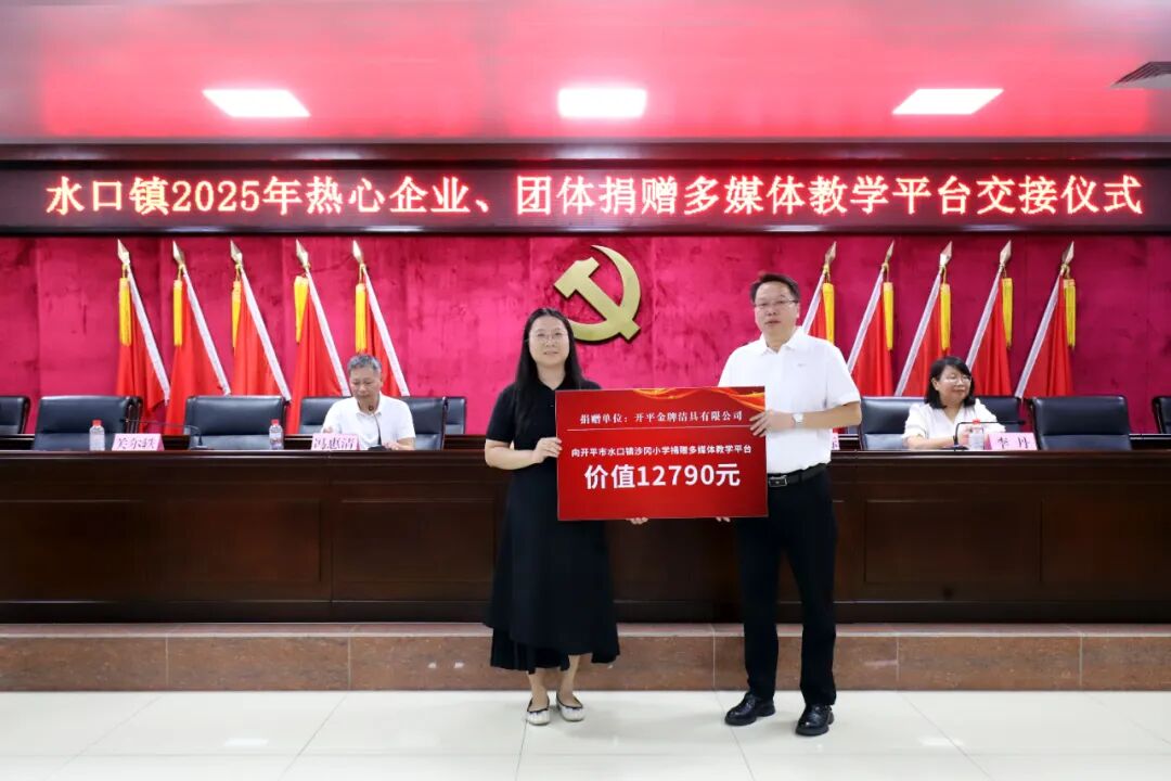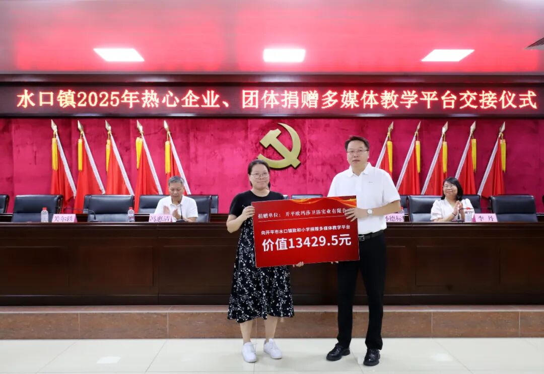 教育的高質(zhì)量發(fā)展離不開全社會的共同參與和鼎力支持。大會現(xiàn)場特別舉辦了捐贈儀式,熱心企業(yè)、團體積極踐行社會責任,為水口鎮(zhèn)教育事業(yè)貢獻力量。據(jù)統(tǒng)計,本次捐贈總額約68萬元,包含38個教學平臺一體機教學設備設施和獎教助學金。其中,開平市水口鎮(zhèn)泮村鄺氏族務理事會單獨捐贈了13個電化教學平臺,其他熱心企業(yè)合力捐贈了25個電化教學平臺。這些教學設備將直接用于水口鎮(zhèn)教育信息化建設,助力提升學?,F(xiàn)代化教學水平、優(yōu)化課堂互動體驗。獎教助學金將用于激勵一線教師深耕教學、潛心育人,從 “硬件升級” 與 “精神激勵” 雙維度為水口鎮(zhèn)教育質(zhì)量提升注入強勁動力。