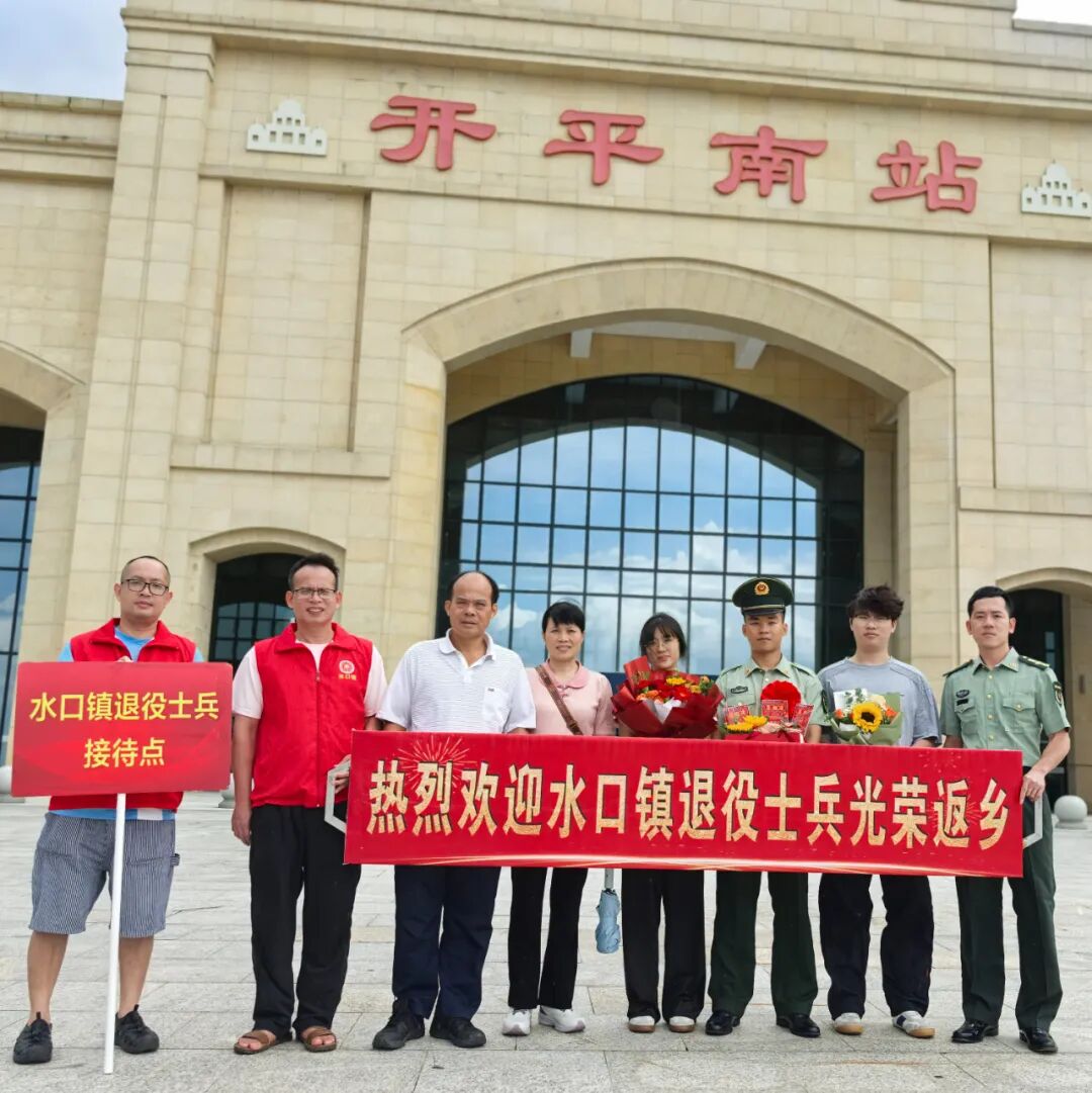 儀式現(xiàn)場(chǎng),“熱烈歡迎水口鎮(zhèn)退役士兵光榮返鄉(xiāng)”的橫幅格外醒目,水口鎮(zhèn)退役軍人服務(wù)站工作人員和軍屬們?cè)缭琮R聚開(kāi)平南站,翹首以盼,靜候“最可愛(ài)的人”榮耀抵達(dá)。