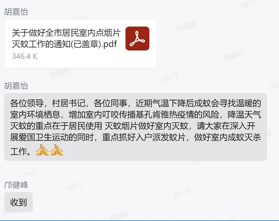 “阿叔,這是免費(fèi)派發(fā)的滅蚊片,現(xiàn)在秋天毒蚊子特別厲害,一早一晚做好防護(hù),點(diǎn)上蚊香或滅蚊片”“點(diǎn)滅蚊片的時(shí)候一定要放在防火托盤上,遠(yuǎn)離窗簾、紙張等可燃物,點(diǎn)燃之后就去上班,回家之后注意通風(fēng),就能享受‘無蚊’之家”……黨員干部和志愿者的貼心叮囑,確保家家戶戶都能安全、正確地使用防蚊產(chǎn)品,讓滅蚊片和蚊香真正發(fā)揮“滅蚊利劍”和“驅(qū)蚊護(hù)盾”的作用。