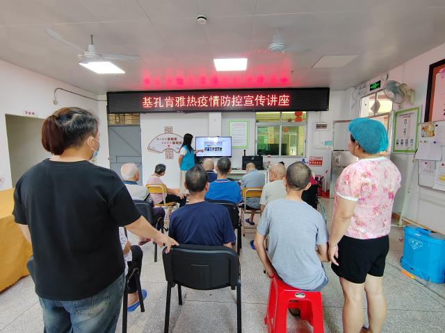 科學(xué)的健康管理對(duì)老年人安享晚年至關(guān)重要。為進(jìn)一步增強(qiáng)轄區(qū)長(zhǎng)者對(duì)基孔肯雅熱等蚊媒傳染病的認(rèn)識(shí)和防范意識(shí),提升防蚊滅蚊自我保護(hù)能力,近日,水口鎮(zhèn)社會(huì)工作服務(wù)站在水口鎮(zhèn)頤養(yǎng)院開(kāi)展基孔肯雅熱疫情防控宣傳講座。講座中,“雙百”社工以通俗易懂的語(yǔ)言和生動(dòng)真實(shí)的案例,詳細(xì)介紹了基孔肯雅熱的基本特征和傳播途徑,耐心指導(dǎo)老人們?nèi)绾吻謇碇苓叿e水和雜物以及做好個(gè)人外出防護(hù)措施。同時(shí),社工們還利用日常下鄉(xiāng)走訪契機(jī),為轄區(qū)內(nèi)老年人測(cè)量血壓,認(rèn)真為老人解讀檢測(cè)結(jié)果,并針對(duì)不同情況給出個(gè)性化健康指導(dǎo)。
