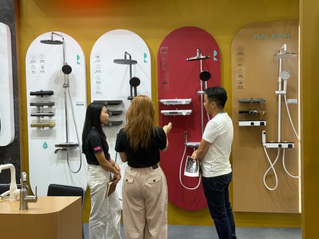 在展廳的另一側(cè),開平市瑞霖淋浴科技有限公司的展位前同樣人頭攢動。董事長馮繼君介紹,此次推出的新品其核心亮點在于“綠色制造”,不僅廣泛采用環(huán)保材料,更融合了先進的節(jié)水技術,精準契合了國際市場對節(jié)能環(huán)保產(chǎn)品的需求。“我們的產(chǎn)品在確保功能性的同時,在環(huán)保與節(jié)水方面也下足功夫。目前已與多家采購商進入深入洽談階段。”馮繼君說。