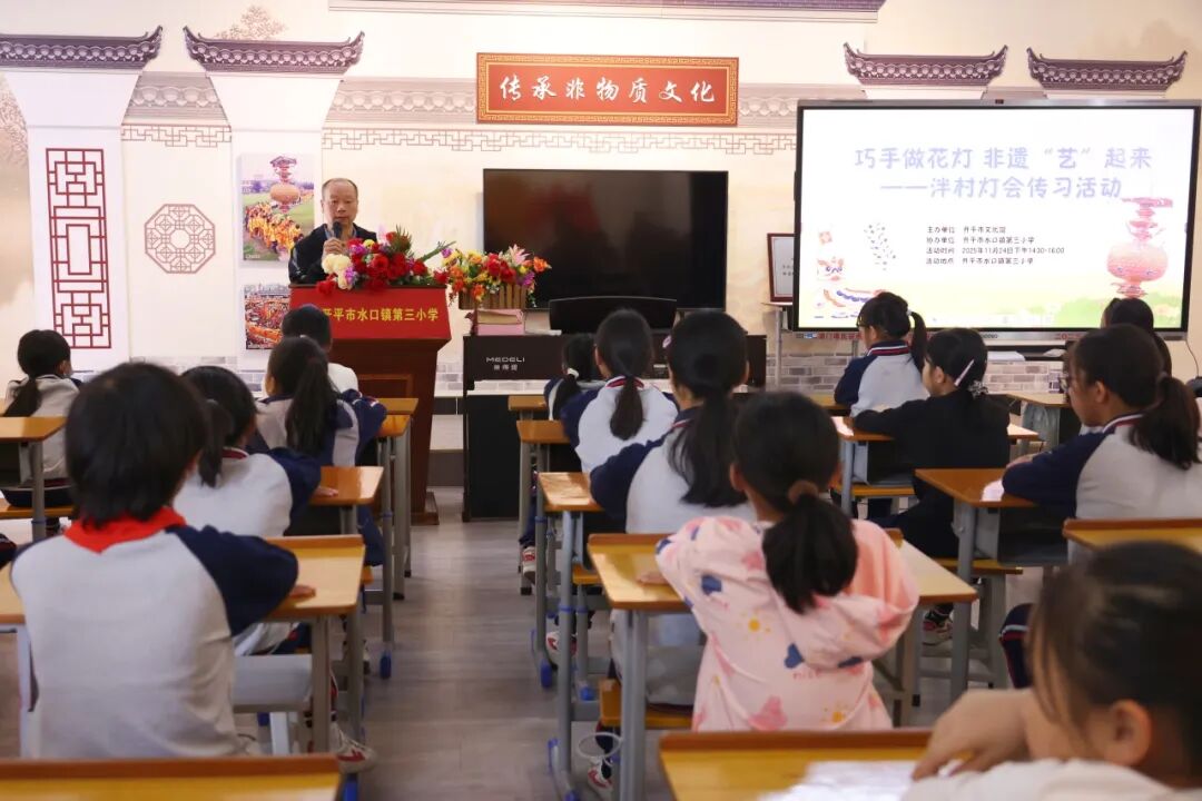 11月24日下午,巧手做花燈 非遺“藝”起來——泮村燈會傳習活動在水口第三小學熱鬧上演,師生們聽講座、做花燈,讓非遺技藝在互動體驗中煥發(fā)新生。
