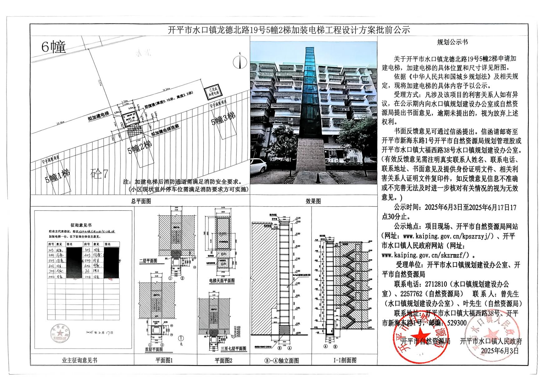關(guān)于開平市水口鎮(zhèn)龍德北路19號(hào)5幢2梯申請(qǐng)加建電梯,加建電梯的具體位置和尺寸詳見附圖。