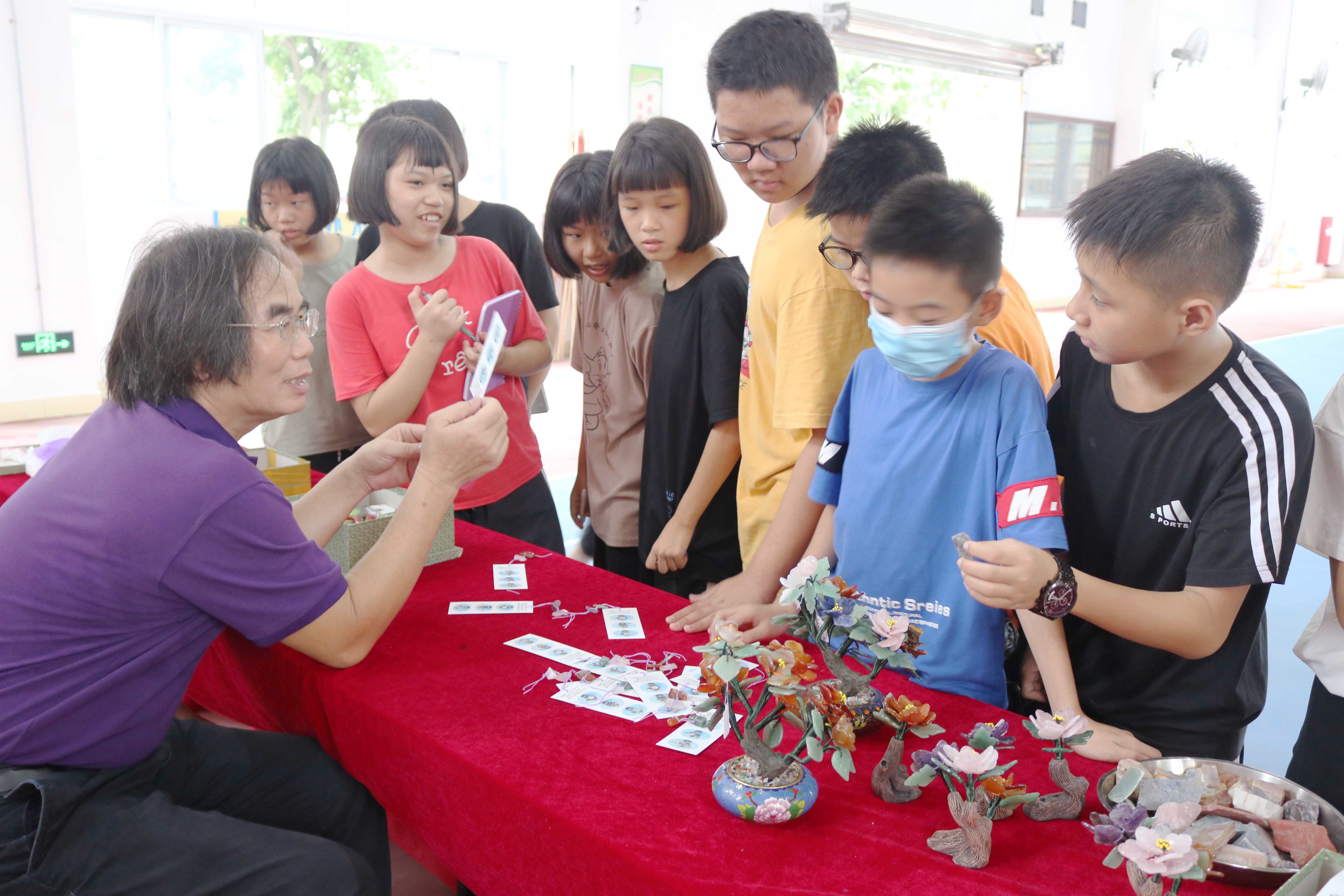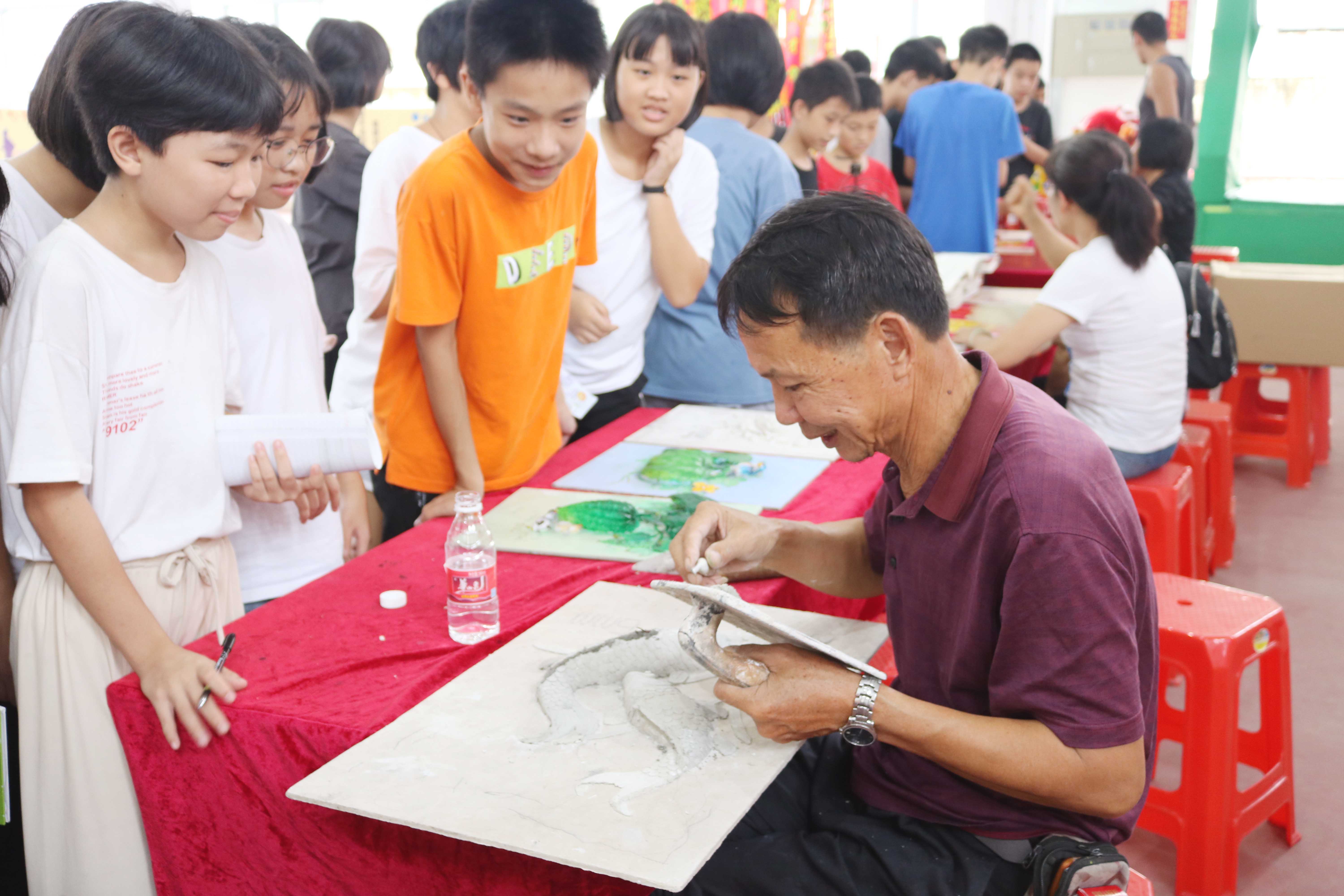 活動(dòng)現(xiàn)場邀請到開平市非物質(zhì)文化遺產(chǎn)傳承人表演開平灰塑、玉石花盆景制作等傳統(tǒng)技藝,講解開平民歌起源及發(fā)展歷史并即興哼唱表演,明媚輕快的旋律吸引吸引大批學(xué)生駐足傾聽?,F(xiàn)場還設(shè)立宣傳展板,展示開平市鄉(xiāng)土文化保護(hù)和發(fā)展的成就,讓“梅花百詠”“馬岡瀨粉”“開平賣雞調(diào)”等開平“非遺”項(xiàng)目與學(xué)生“親密接觸”,為傳統(tǒng)文化活態(tài)傳承播下興趣的種子。