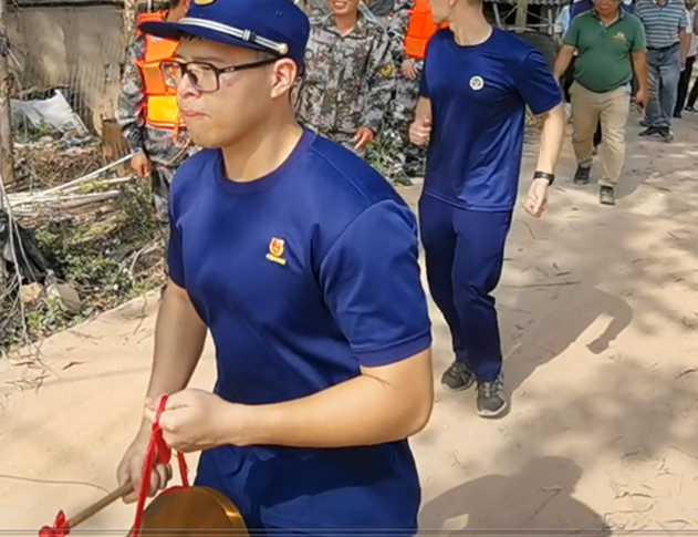 轉(zhuǎn)移安置組敲響銅鑼,帶領(lǐng)險(xiǎn)情下游群眾安全有序撤離現(xiàn)場(chǎng)