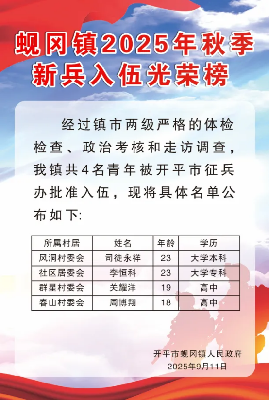 “國無防不立,民無兵不安?!弊哉鞅ぷ鲉右詠?,蜆岡鎮(zhèn)武裝部及相關部門嚴格遵照上級部署,精心組織、密切配合,堅持高標準、嚴要求,確保了征兵各個環(huán)節(jié)公平、公正、公開、透明。四位青年的脫穎而出,是蜆岡鎮(zhèn)國防動員工作成效的一次集中體現(xiàn),也是蜆岡鎮(zhèn)深厚擁軍優(yōu)屬傳統(tǒng)和全民國防意識不斷增強的生動見證。