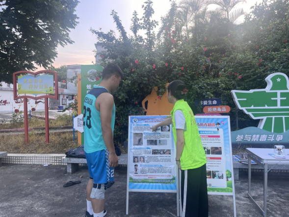 為進(jìn)一步加強(qiáng)禁毒宣傳力度,掀起禁毒宣傳月高潮,增強(qiáng)廣大群眾識毒防毒拒毒意識,2025年6月10日晚,蜆岡鎮(zhèn)平安法治辦公室聯(lián)合開平市昭宇社會工作綜合服務(wù)中心在鎮(zhèn)文體中心籃球場,以籃球友誼賽為載體開展“健康人生,綠色無毒”主題禁毒宣傳活動。賽場上,球員們互相合作、全力奔跑以及精準(zhǔn)投籃,都傳達(dá)著對體育運(yùn)動的熱愛,同時傳遞著對健康無毒生活的追求。賽場下,禁毒社工向場外的球員們、觀看比賽的群眾派發(fā)禁毒宣傳單張、展示仿真毒品模型,用通俗易懂的話語向他們講解《禁毒法》、“6·26”國際禁毒日、毒品的種類及如何防范毒品等知識,并著重介紹了新型毒品依托咪酯“上頭”電子煙的危害及防范措施。通過這場充滿激情與力量的賽事,將禁毒宣傳融入拼搏的汗水、合作的喜悅和勝利的歡呼聲中,在賽場內(nèi)外敲響“健康人生,綠色無毒”的警鐘,不僅創(chuàng)新了禁毒宣傳月的活動形式,更讓“無毒”的理念隨觀眾的腳步延伸至社區(qū)街巷、家庭角落,為構(gòu)建全民防毒體系注入了年輕化、互動化的新動能。